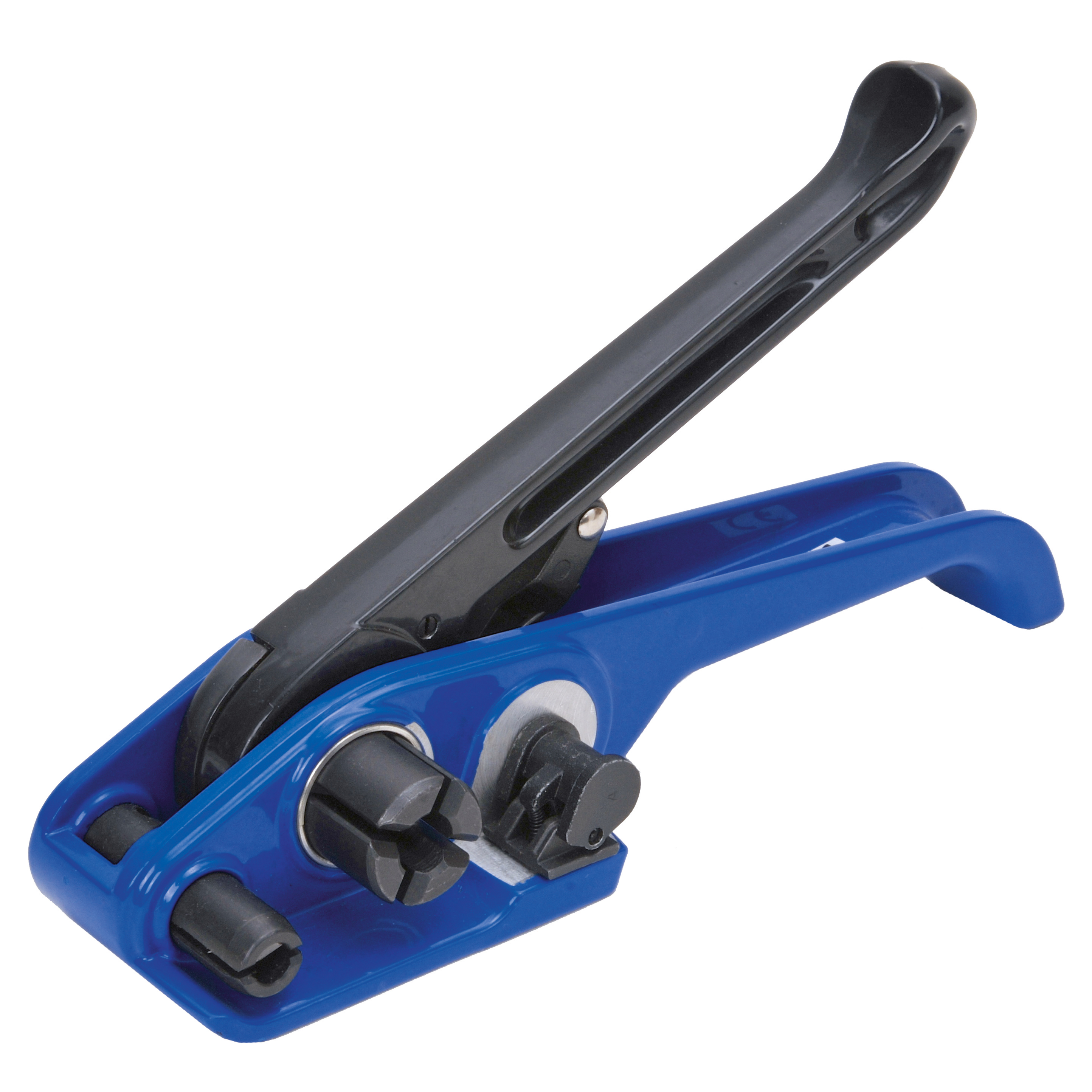 För VG-band på rullar med innerdiameter 76 mm. Stabil, med låda för spännen och sträckare.