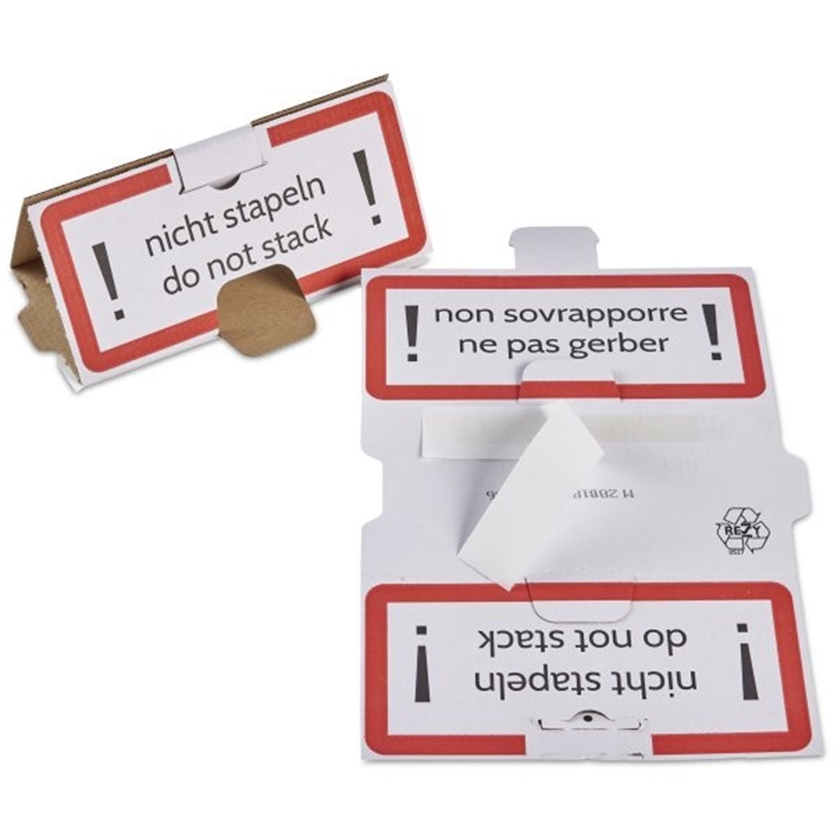 - Varningsskylt som tydligt varnar mot stapling av lastpallar. Placeras väl synligt ovanpå översta pallen - Skylten är försedd med dubbelhäftande tejp för snabb montering på pallen - Två hål för eventuell montering med band istället för tejp - Skylten är 600 mm bred, två perforeringar vid 200 och 400 mm vilket underlättar hopvikning till trekantsform