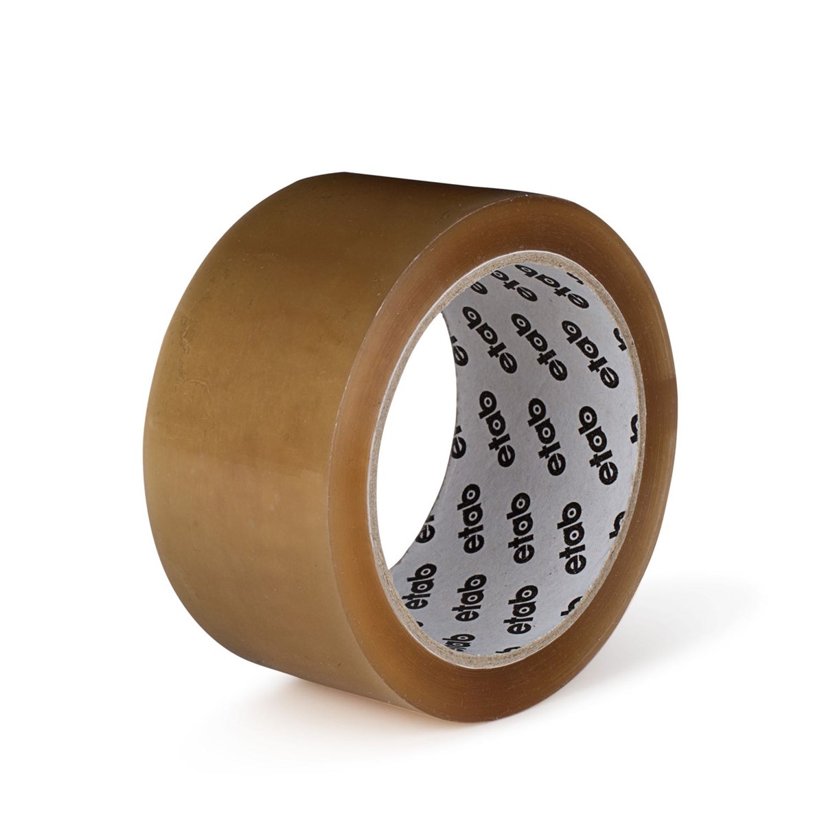 Packtejp PP-film med slät yta och gummibaserat häftämne. God häftförmåga. Lättavrullad. För kartongförslutning, emballering, fasthållning.