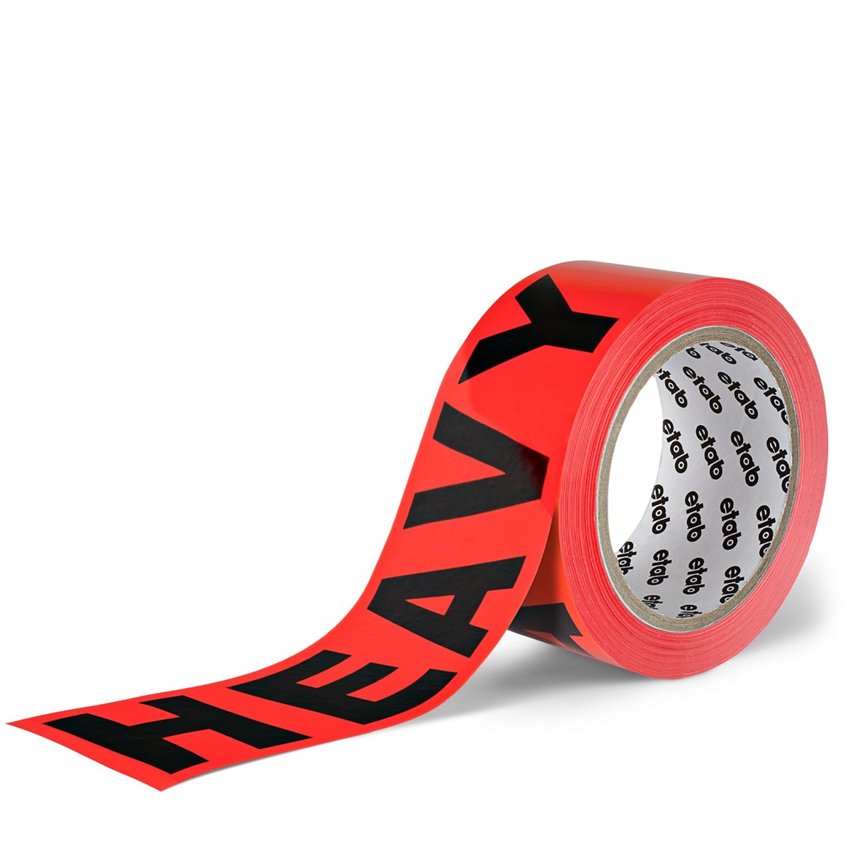 Etab standardtryck 9671 med tryck HEAVY i svart. Denna förslutningstejp med tryck passar utmärkt att använda i packtejpshållare för att underlätta försegling av emballage. Uppfyller de kraven från Postnord att paket över 20 kg ska markeras på tre sidor.