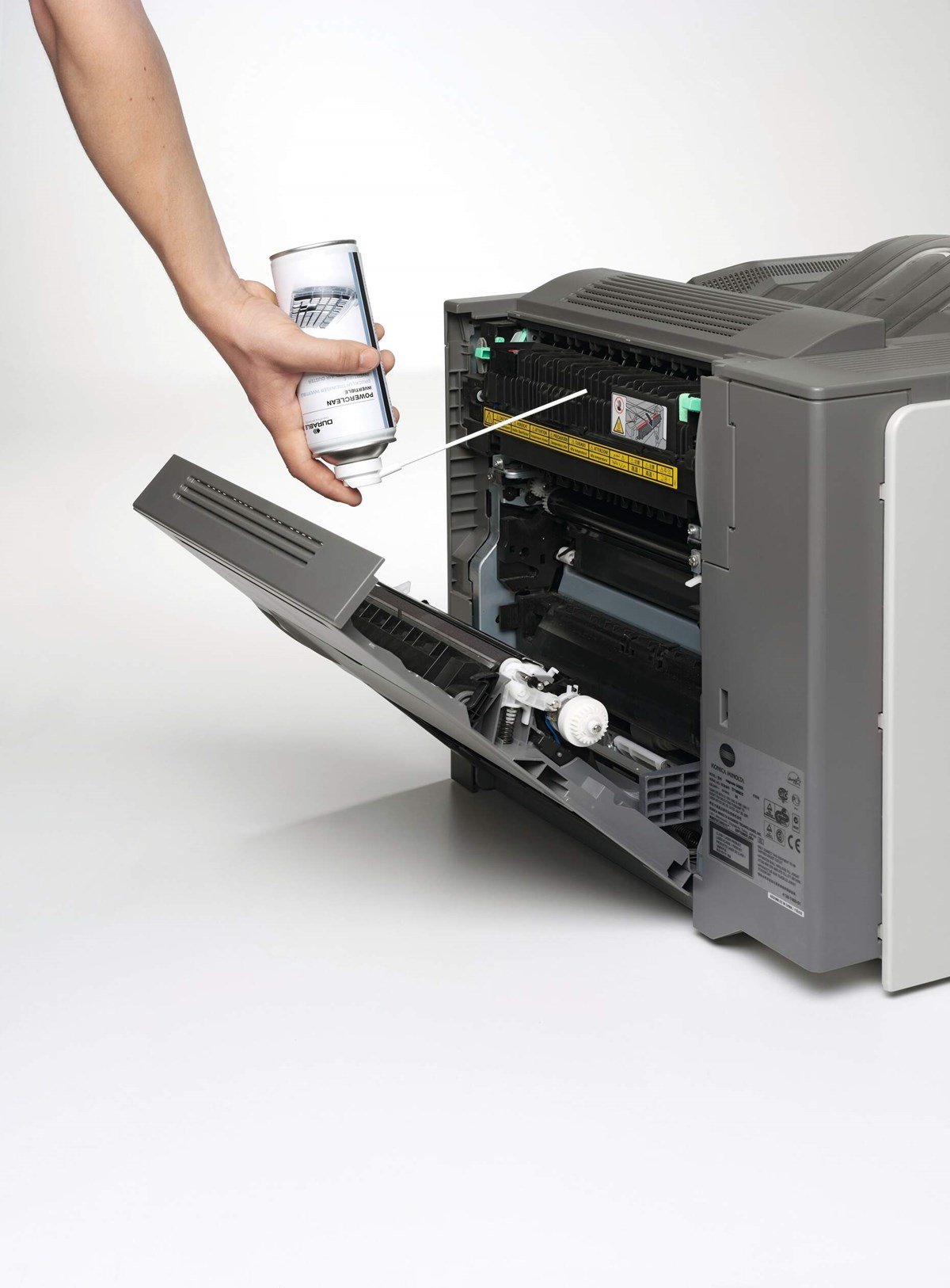 För rengöring av svåråtkomliga eller känsliga ytor t.ex. skrivare, tangentbord samt foto- och filmkameror. Med förlängningsrör för precision vid sprayning. Flaskan kan användas i valfri vinkel. Brandfarlig drivgas.