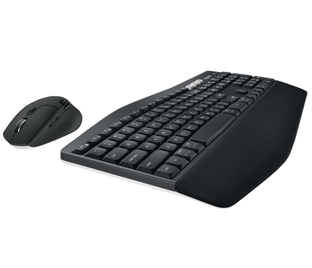 Trådlös tangentbords- och muskombination med full kraft och fullt stöd. Det mjuka handledsstödet, den rundade tangentbordsramen och musens rundade form ser till att du arbetar bekvämt och ergonomiskt. Växla mellan skärmar med både tangentbord och mus för ökad mångsidighet. Justerbara, lutningsbara ”ben” ger en perfekt skrivvinkel. Musens rundade utformningen och den mjuka gummiytan gör att den ligger bekvämt mot handen. Hypersnabb rullning hjälper dig att flyga fram genom dokumenten och webbsidorna, och det normalstora tangentbordet med noggrant utformade, konkava tangenter gör att du kan skriva både tyst och snabbt.