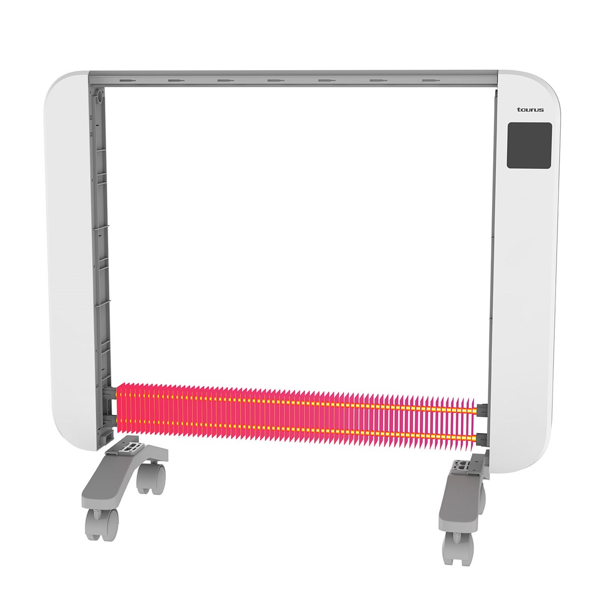 Den här elektriska radiatorn på 2000W är utformad för att ge effektiv och bekväm uppvärmning i alla rum i ditt hem. Dess rena värmesystem bevarar luftfuktigheten, vilket gör den till ett utmärkt val för att upprätthålla en hälsosam inomhusmiljö. Den är utrustad med fyra värmeelement med aluminiumkärna som säkerställer jämn värmefördelning och optimal prestanda för varaktig komfort. Radiatorn har en LCD-display med timer och inställningar för omgivningstemperatur, och har lägen som ECO, Comfort, Night och Anti-Frost. Inverterteknik (Triac) ger upp till 30% energibesparing, förbättrad termisk stabilitet och tyst drift. Den justerbara termostaten sträcker sig från 5°C till 30°C och enheten har stöd för 24/7-programmering för ökad bekvämlighet. Installationen är enkel med det lättinstallerade väggfästet och hjulen gör den lätt att flytta. Säkerhetsfunktionerna inkluderar en sensor för öppet fönster, barnlås, överskyddssystem för överhettningsskydd, en knapp för total avstängning för nollförbrukning och en tippskyddsbrytare. Radiatorn är IP24-klassad, vilket garanterar hållbarhet och säkerhet i olika miljöer. Med måtten 73,70 cm i bredd, 56 cm i höjd och 7,50 cm i djup och en vikt på 8,60 kg är radiatorn både kompakt och kraftfull. Den drivs med en spänning på 220-240 V och har en 150 cm lång kabel för flexibel placering.