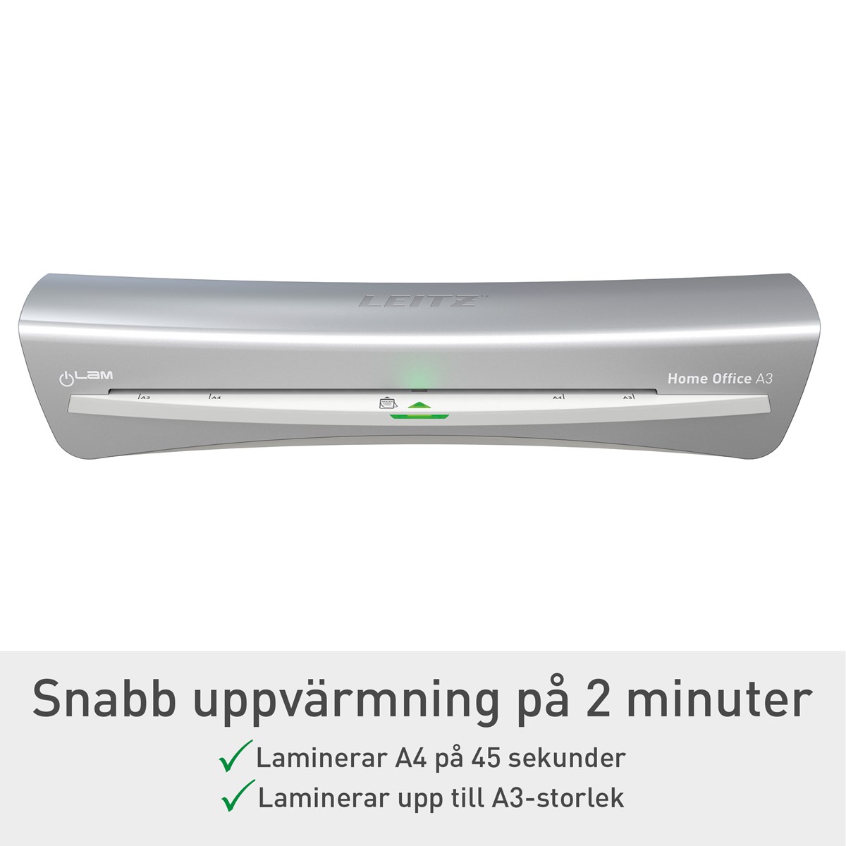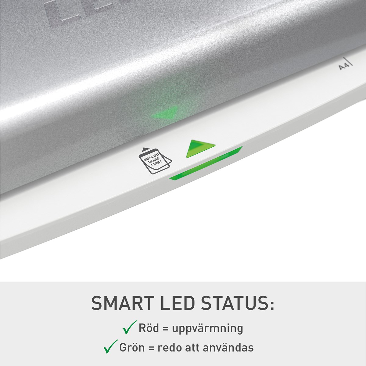Klar att använda på bara 2 minuter med en snabb uppvärmningstid Laminerar ett A4 med 80 mikrometer på cirka 45 sekunder och är även kompatibel med A4-höghastighetsfickor Kompatibel med fickor från 75 till 125 mikron. Minska energiförbrukningen med den automatiska standby-läget efter 15 minuter Innehåller ett startpaket med 5 x A4-fickor (80 mikron)
