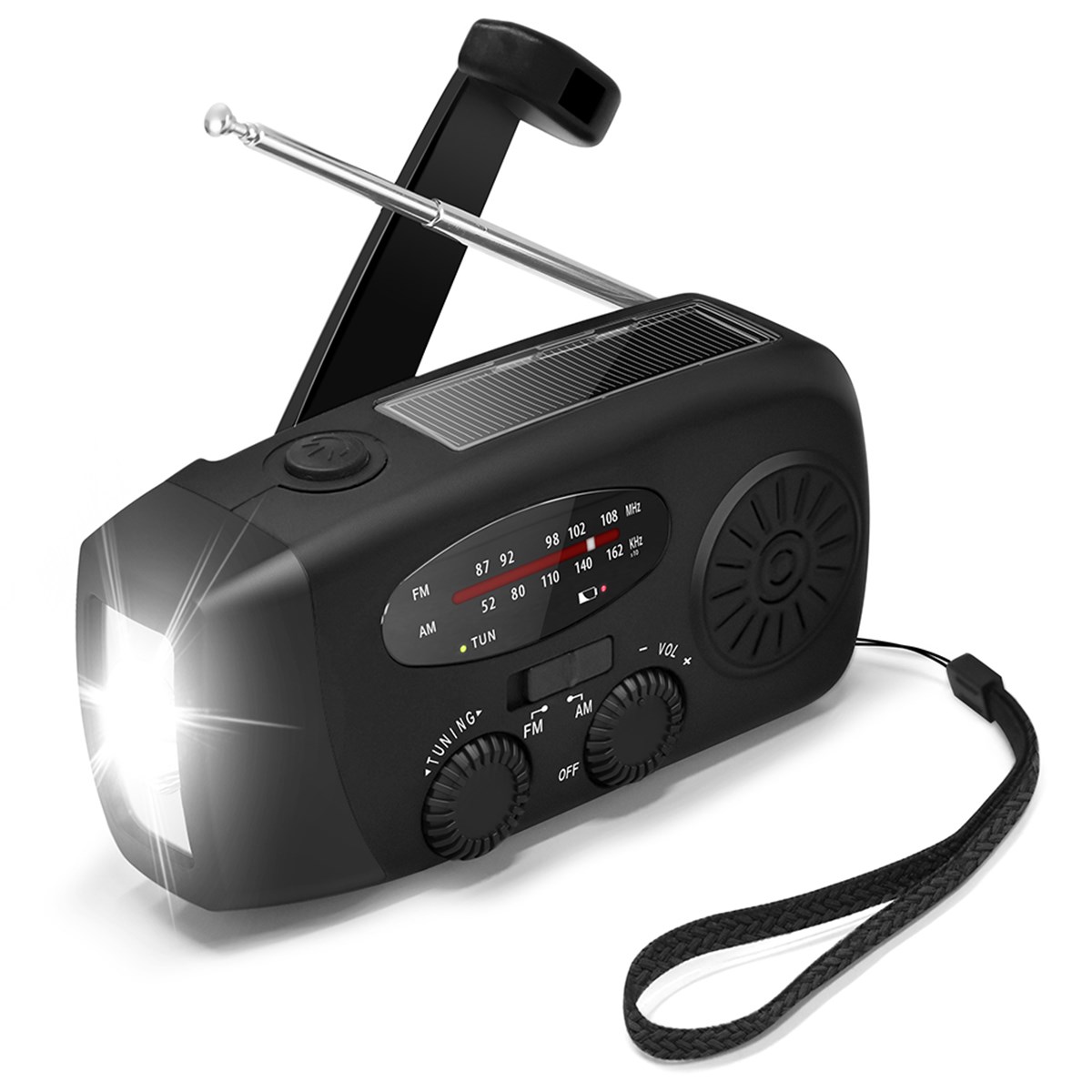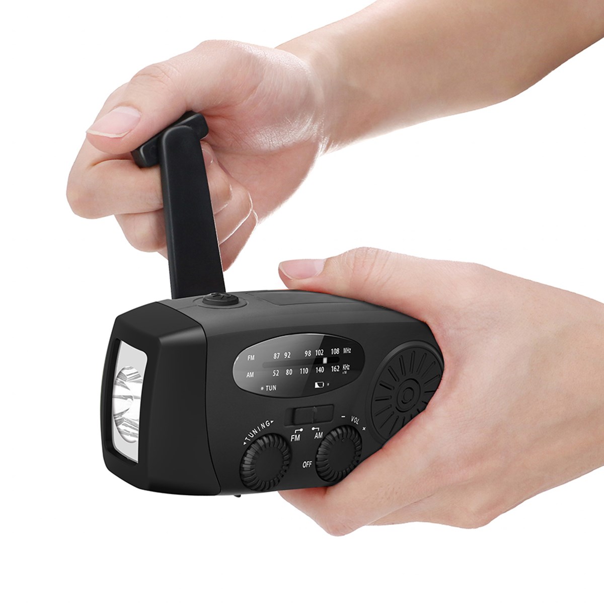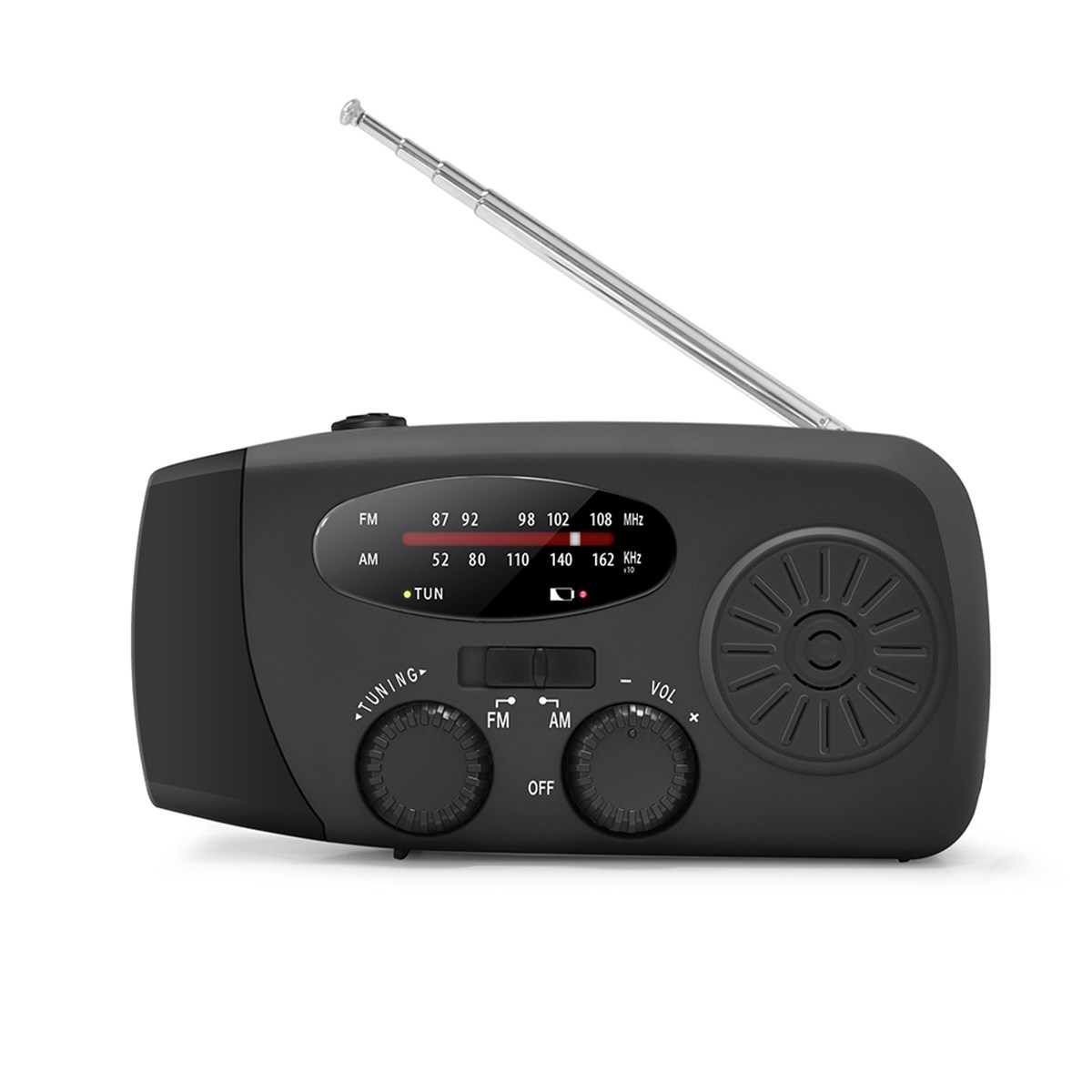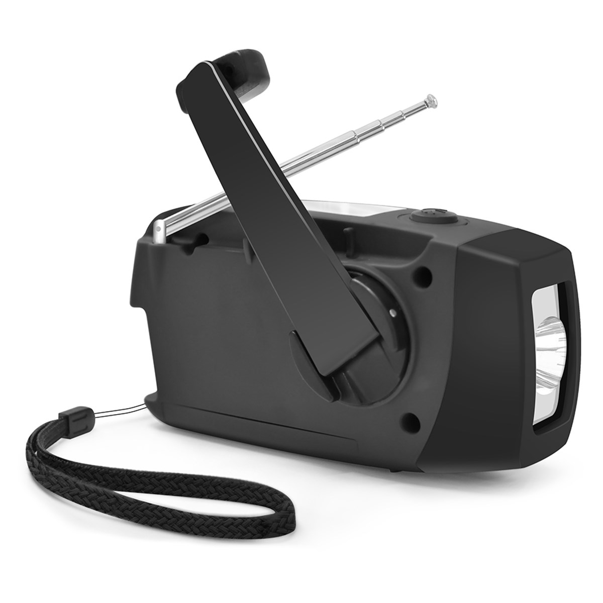Slimmad nödradio för oväntade situationer. Tar emot FM- och AM-radio och har en inbyggd ficklampa samt powerbank på 2000 mAh. När det gäller radions batterikraft har du tre val: ladda via att veva, via solceller eller via USB-uttag. USB-uttaget kan även användas för att ladda andra elektroniska prylar, t.ex. din telefon. Mått: 128 x 64 x 45 mm. Kan förses med logga vid köp av 50 st eller fler.
