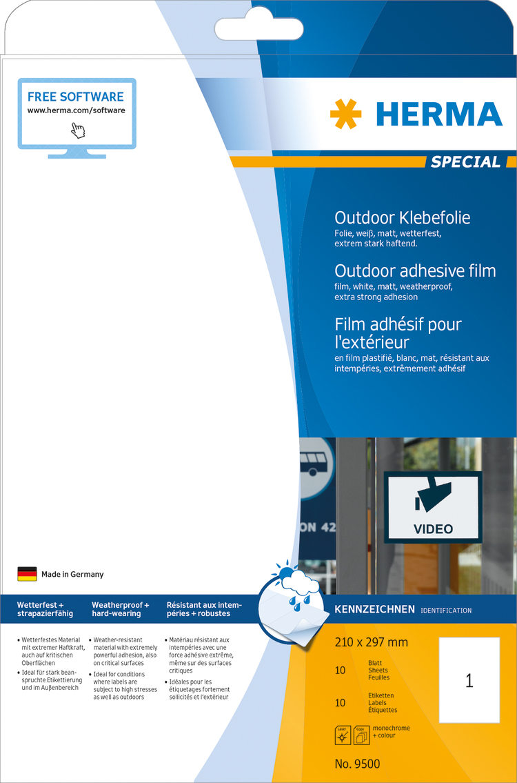 Etikett för tuffa tag och extrema förhållanden Av polyetylenfilm – extremt kraftigt vidhäftande. Idealiska för användning utomhus och i miljöer som ställer höga krav på hållbarhet. Kan användas som fönsterdekaler, hänvisnings- och varningsskyltar, på lager och produktion etc. Väder-, saltvattens- och åldringsbeständiga, smutsavvisande och avtvättbara. Klarar temperaturer från -40°C till +150°C. Vita etiketter för laser och kopiering. A4-ark.