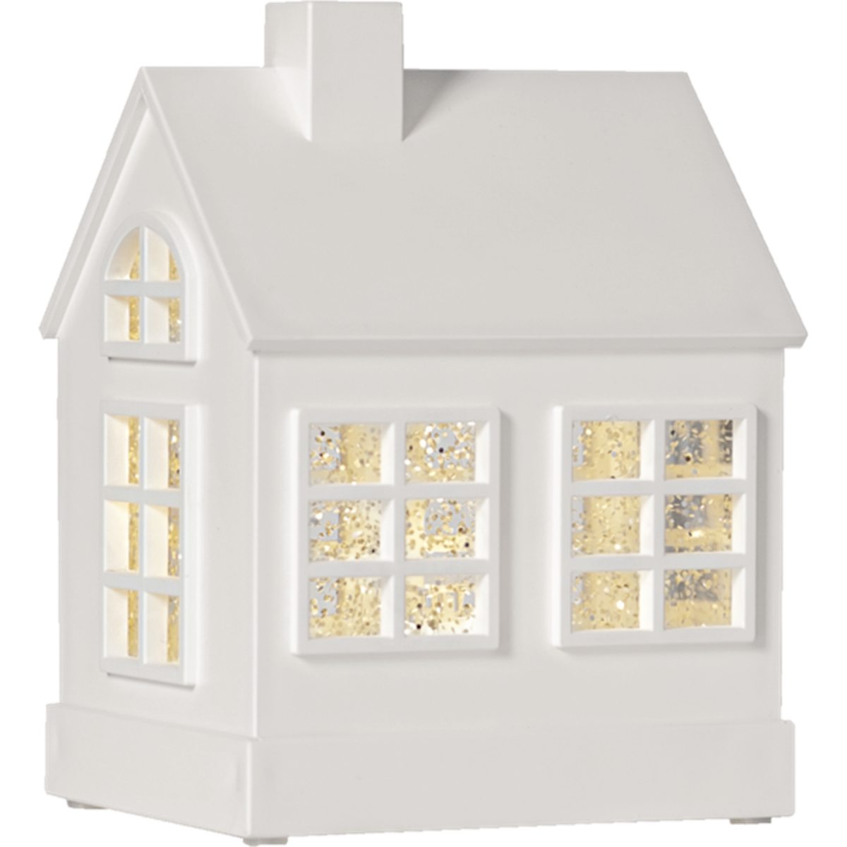 Fantastiskt vitt huslykta som juldekoration. Det snöar och lyser vackert när produkten är påslagen. Batteridriven med timerfunktion. Placera på ett bord eller en hylla för en härlig advents- och julstämning. Drivs med 3 st AA-batterier (medföljer ej).