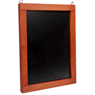 Ram av rödbetsad trä med skrivbar griffelyta.