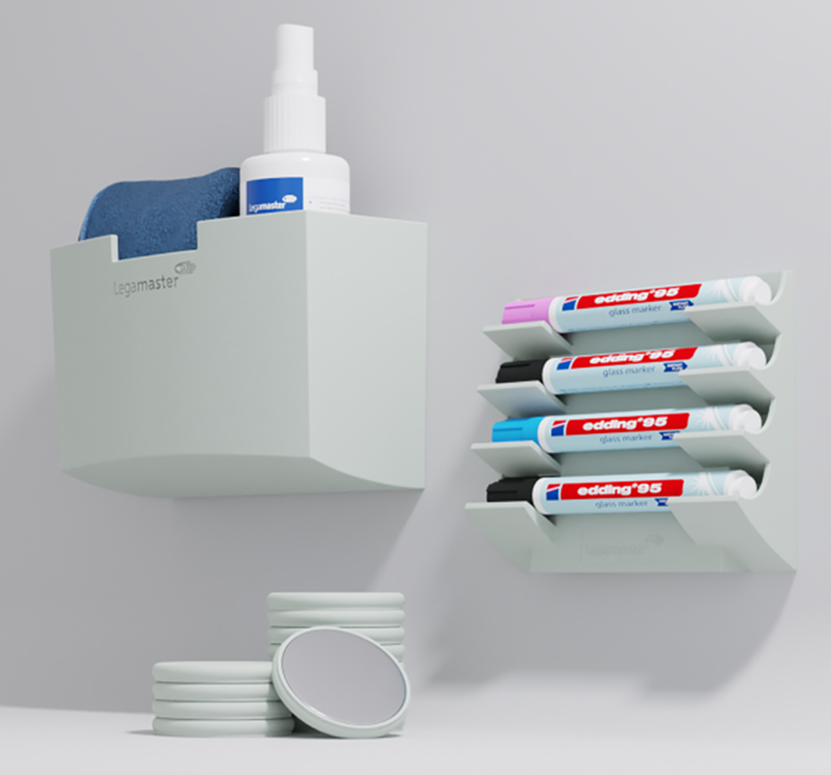 Extra starka magneter för glastavlor. Diameter: 30 mm. Matchar de exakta färgerna på Legamaster matt glasskiva.