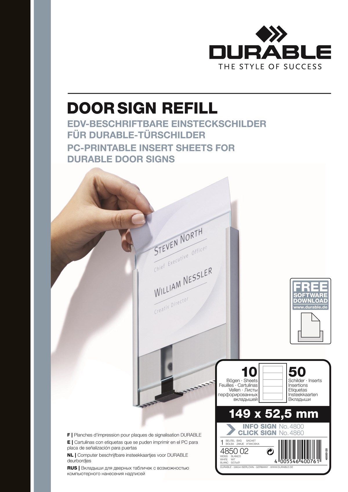 Etikett till dörrskylt 149x52,5 mm 50/fp
