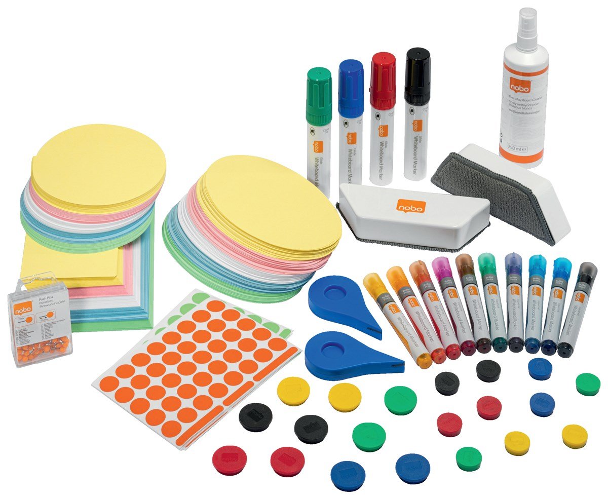 Det mobila whiteboardsystemet Move & Meet erbjuder ultimat flexibilitet i alla arbetsmiljöer. Enkelt konfigurerade för att uppfylla dina behov. Detta tillbehörspaket är förpackat i en snygg förvaringsbox som passar perfekt på systemets mobila bas och innehåller allt du behöver för att komma igång. Den innehåller 10 whiteboardpennor i olika färger, 10x32 mm och 10x24 mm whiteboardmagneter, 2 whiteboardsuddar, 1 regöringsspray för whiteboard, 2 tejprullar, 100 kartnålar, 750 modereringskort och 1040 självhäftande prickar. Över 1900 enskilda föremål.