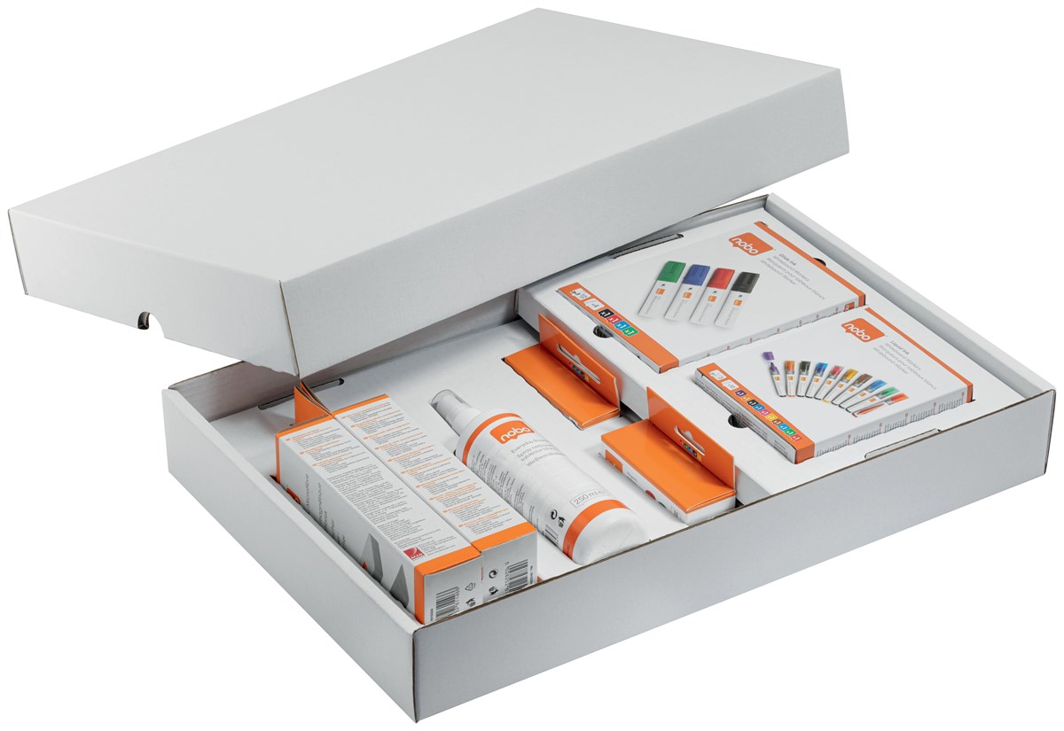 Det mobila whiteboardsystemet Move & Meet erbjuder ultimat flexibilitet i alla arbetsmiljöer. Enkelt konfigurerade för att uppfylla dina behov. Detta tillbehörspaket är förpackat i en stilren förvaringsbox som passar perfekt på systemets mobila bas och innehåller allt du behöver för att komma igång. Innehåller 10 whiteboardpennor i olika färger, 10x32 mm och 10x24 mm whiteboardmagneter, 2 whiteboardsudd och en rengöringsspray som håller dina whiteboardtavlor i så gott som nyskick.