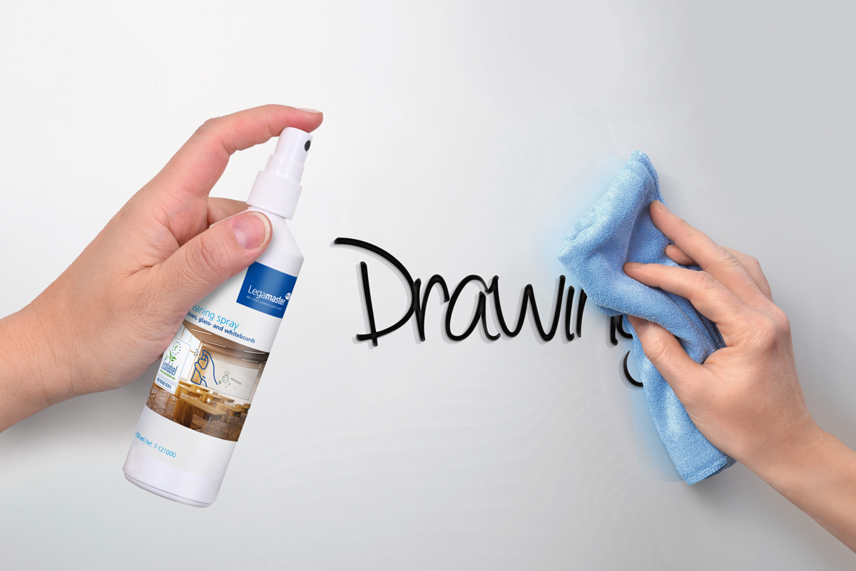 Praktisk sprayflaska med finfördelad dusch. Effektiv alkohollösning som avlägsnar pennbläck, ghosting, fläckar och damm från whiteboardpennor.