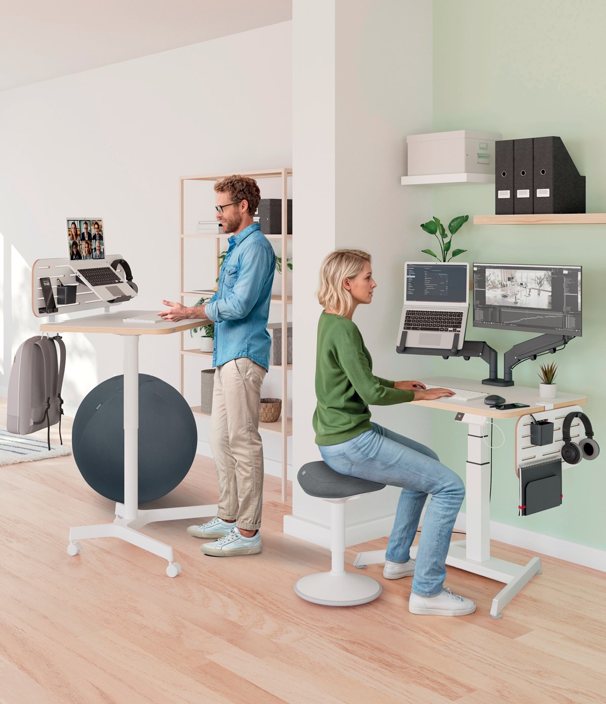 Sitt - Stå - Rör dig. Oavsett om du strävar efter en hälsosammare livsstil eller vill undvika värk och smärta när du arbetar, kommer våra utrymmesbesparande sitt- och ståbord att lyfta din arbetsplats till nya höjder.