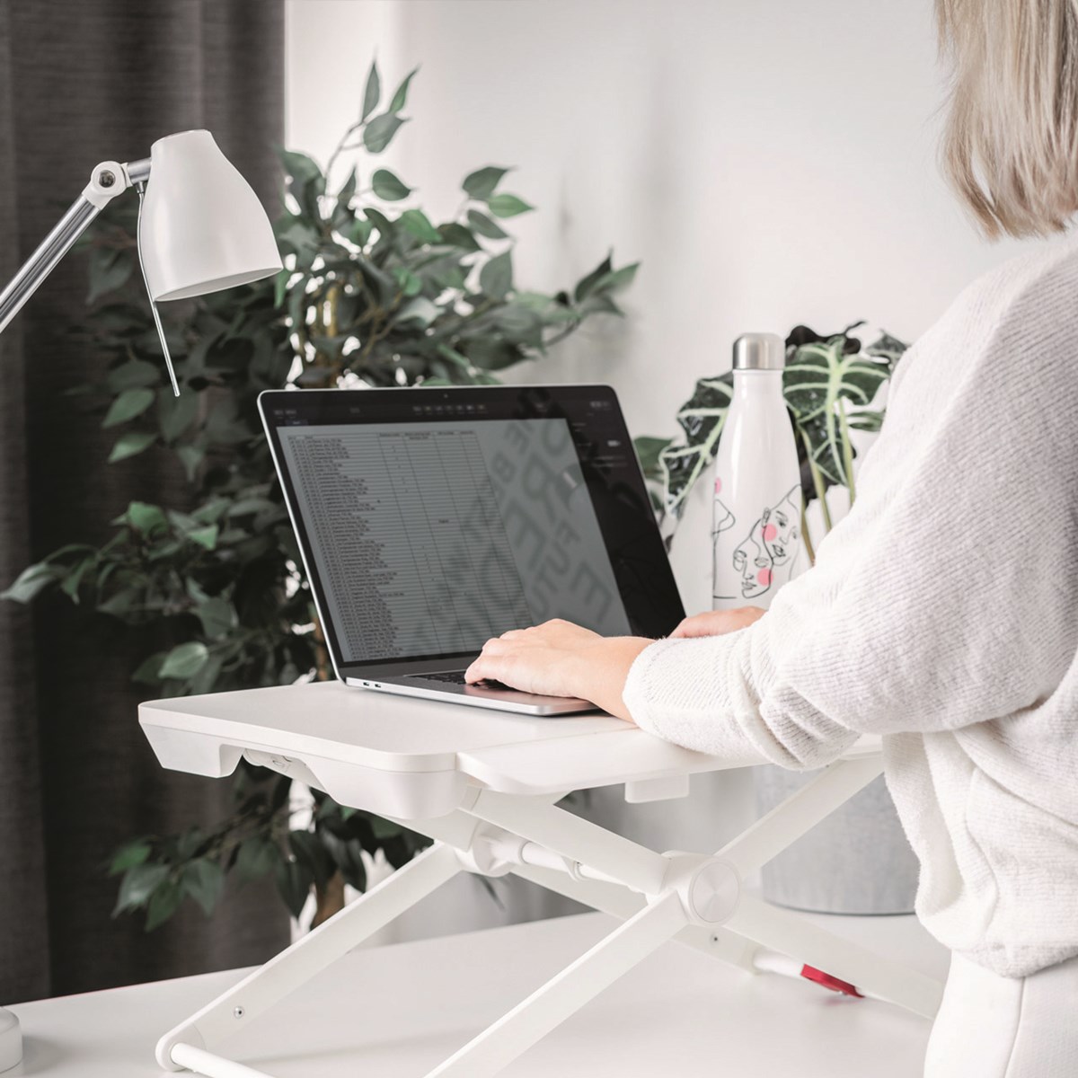 Lättviktigt och stilrent höj- och sänkbart bord som på ett flexibelt sätt ger möjlighet att både sitta och stå vid bord som inte är justerbara höjdledes. Armstödet framtill ger en bekväm avlastning för handleder och armar. Bordsskiva av tåligt laminat. Justerbart i 5 lägen, 75 mm (ihopfällt), 210, 280, 330 och 380 mm. Mått: 60 x 41 x 7,5–38 cm. Frakt tillkommer, kontakta oss om prisuppgift.