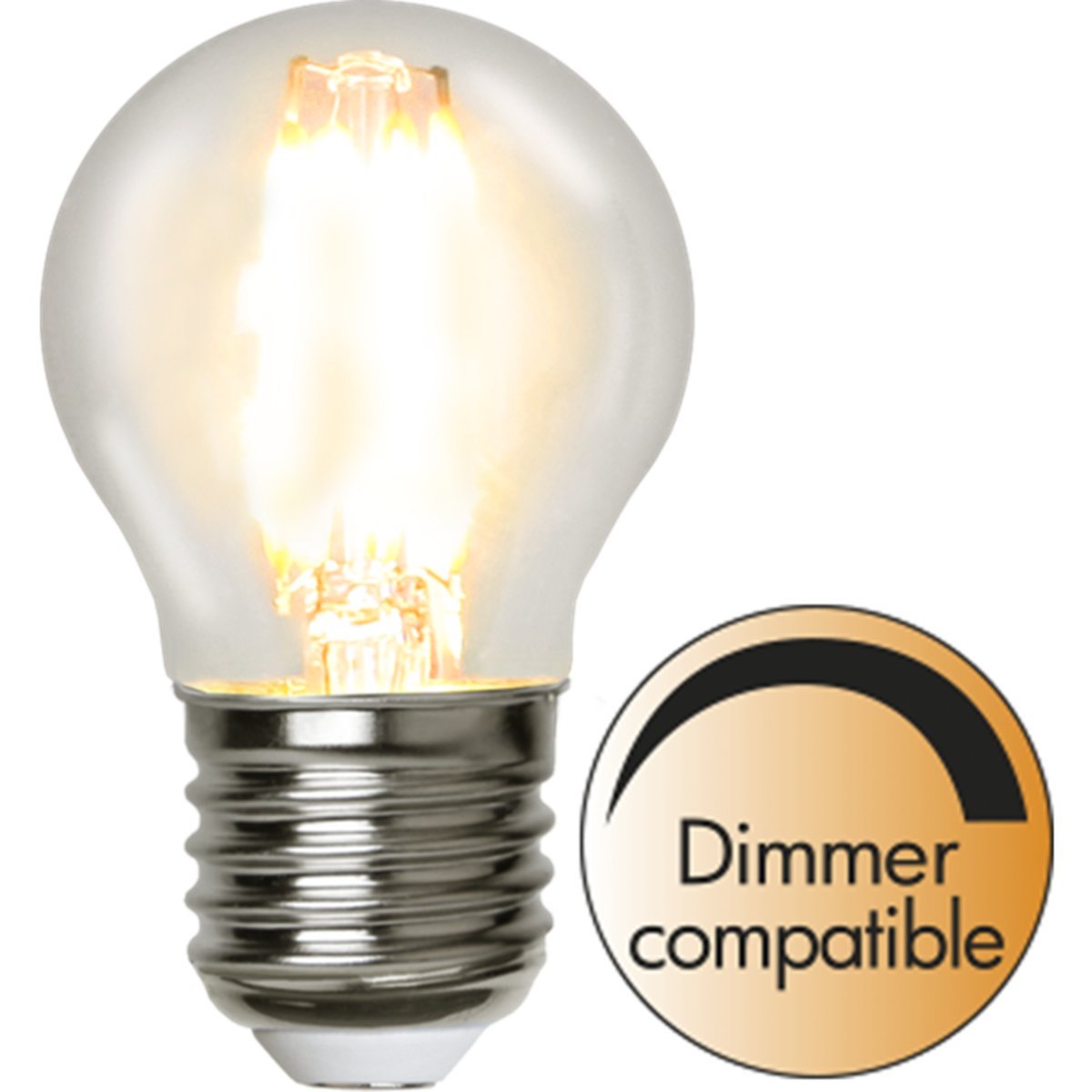 Klar filament LED-lampa med E27-sockel. Färgtemperaturen är 2700k och lampan är dimmerkompatibel.