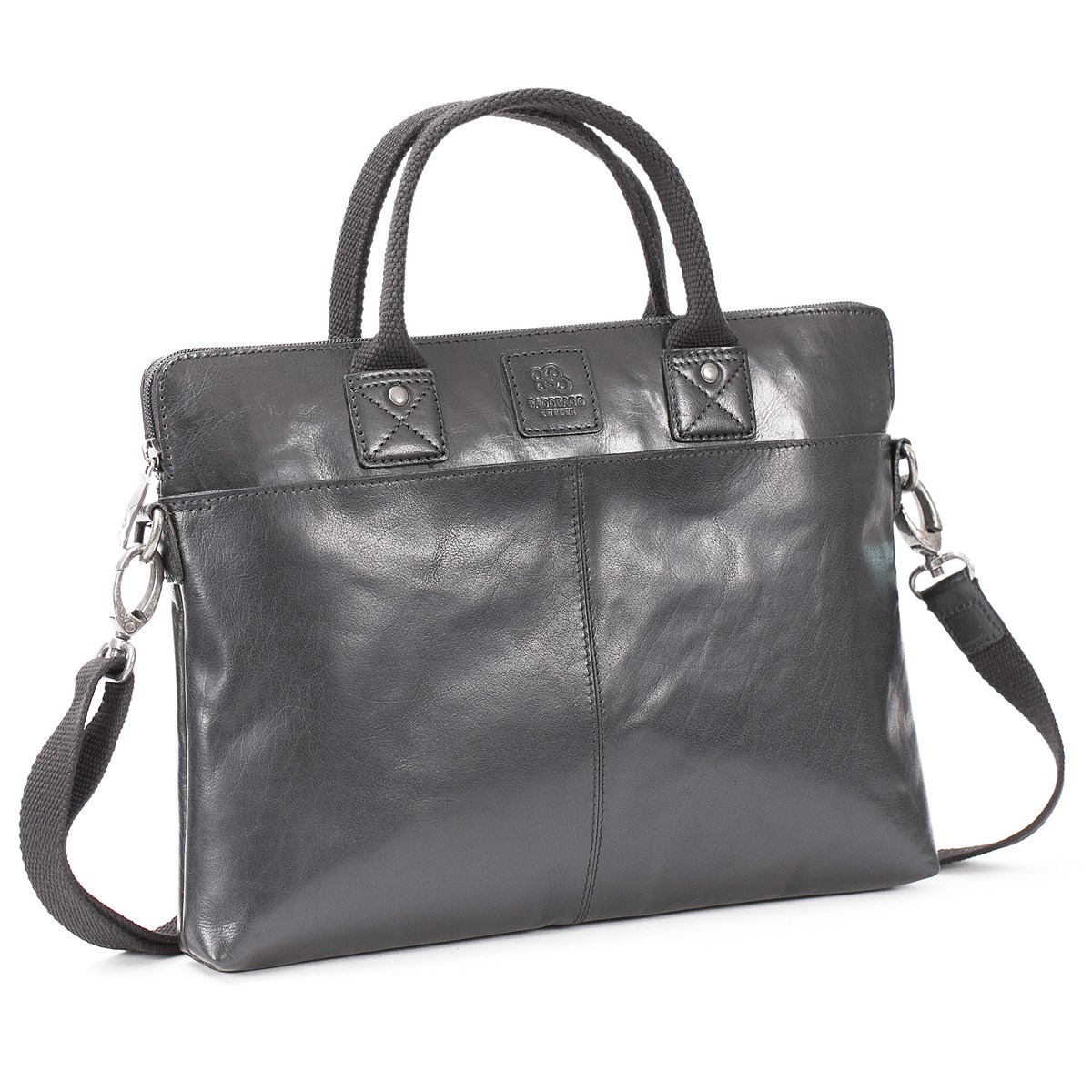 Slimmad datorväska i genuint läder för dator upp till 13 tum. På framsidan ett stort fack som stängs med magnet. Fack med dragkedja på baksidan. Helt vadderad inuti och ett vadderat fack. Avtagbar och justerbar axelrem. Mått: 36 x 27 x 4,5 cm.