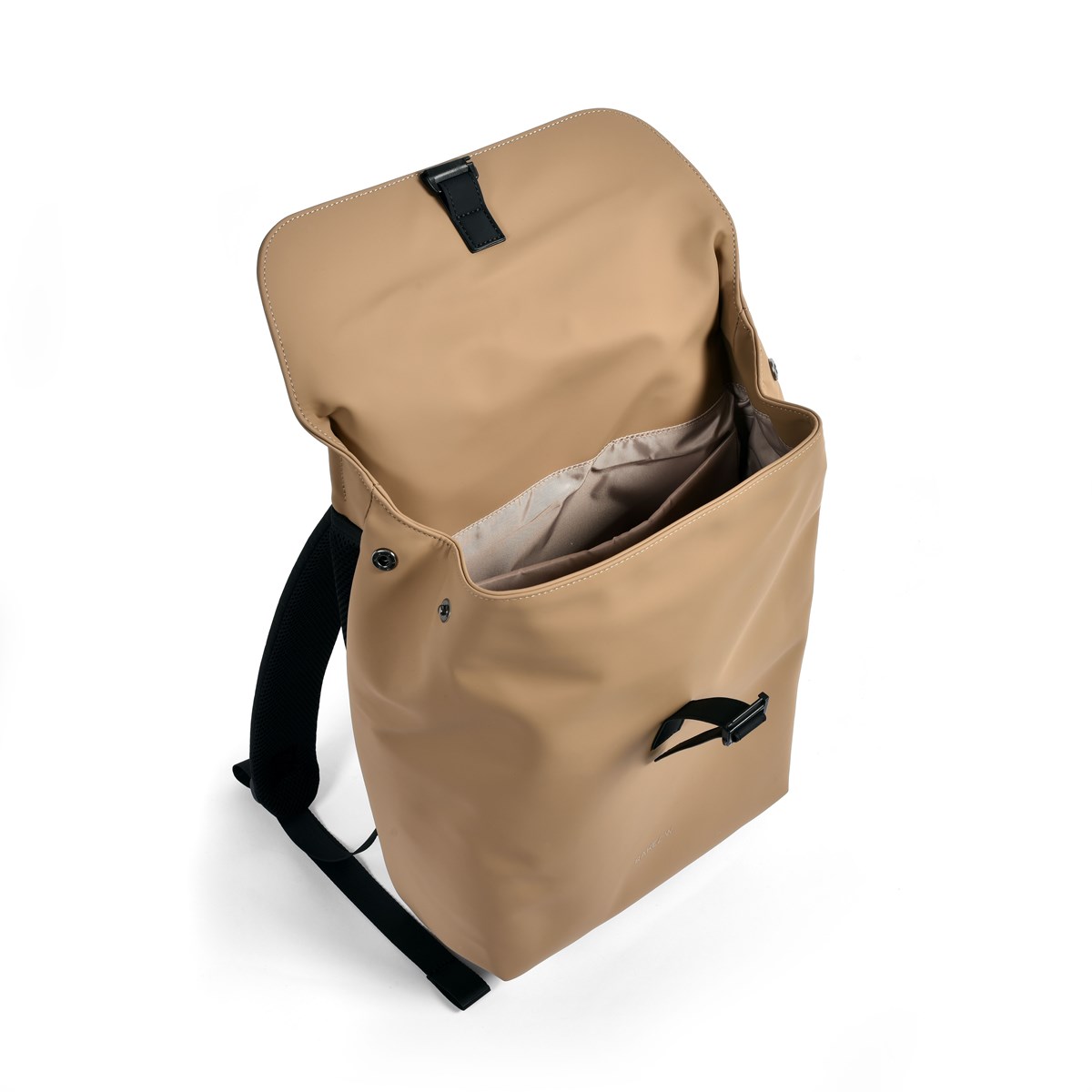 Ryggsäcken har justerbara axelremmar, vadderad ryggpanel för extra komfort och praktiska sidoknappar som gör att du kan anpassa öppningen efter behov.