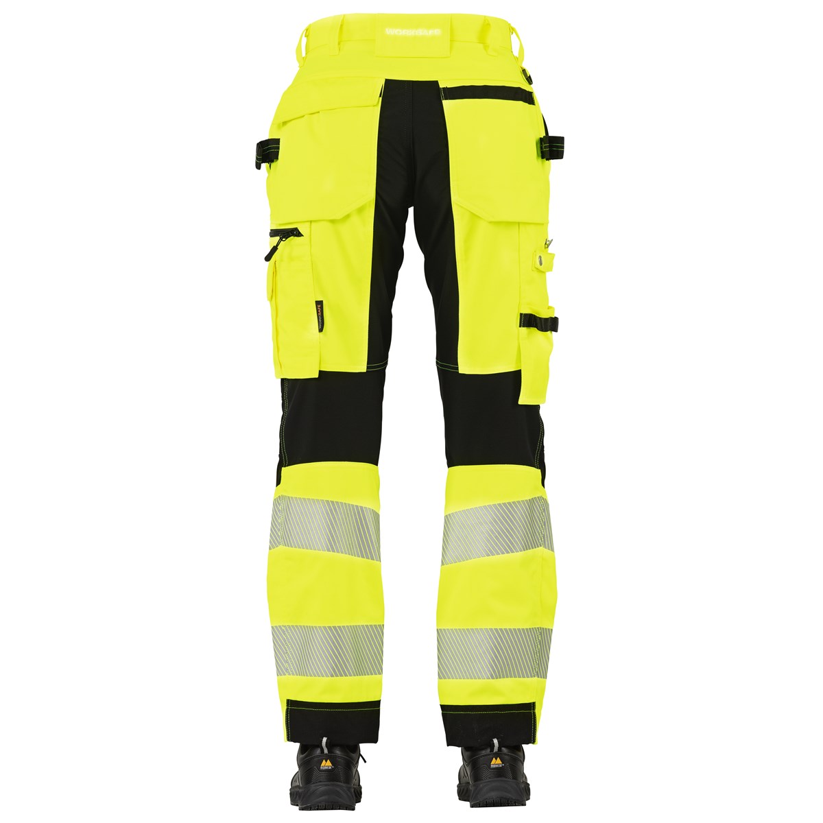 Varselbyxa från Worksafe i dam-modell, lämplig för arbeten i utsatta miljöer. Varselbyxan har svarta stretchpaneler för ökad komfort och förstärkta, samt förböjda knän för god komfort och ökad slitstyrka. Designad med mörk färg på partier som ofta utsätts för smuts. Certifierad enligt EN ISO 20471 klass 1 i storlek 34-38 samt klass 2 i storlek 40-46.