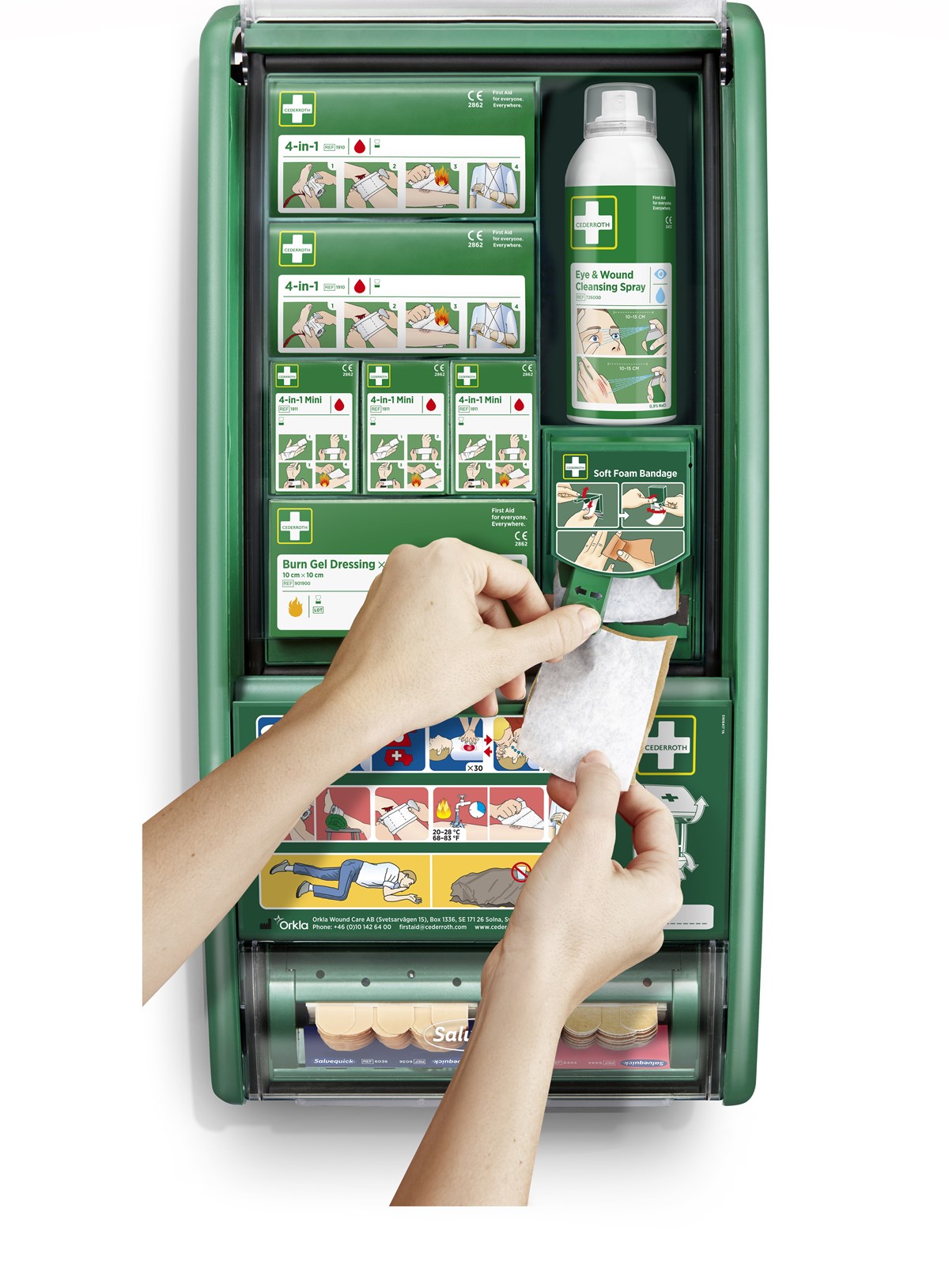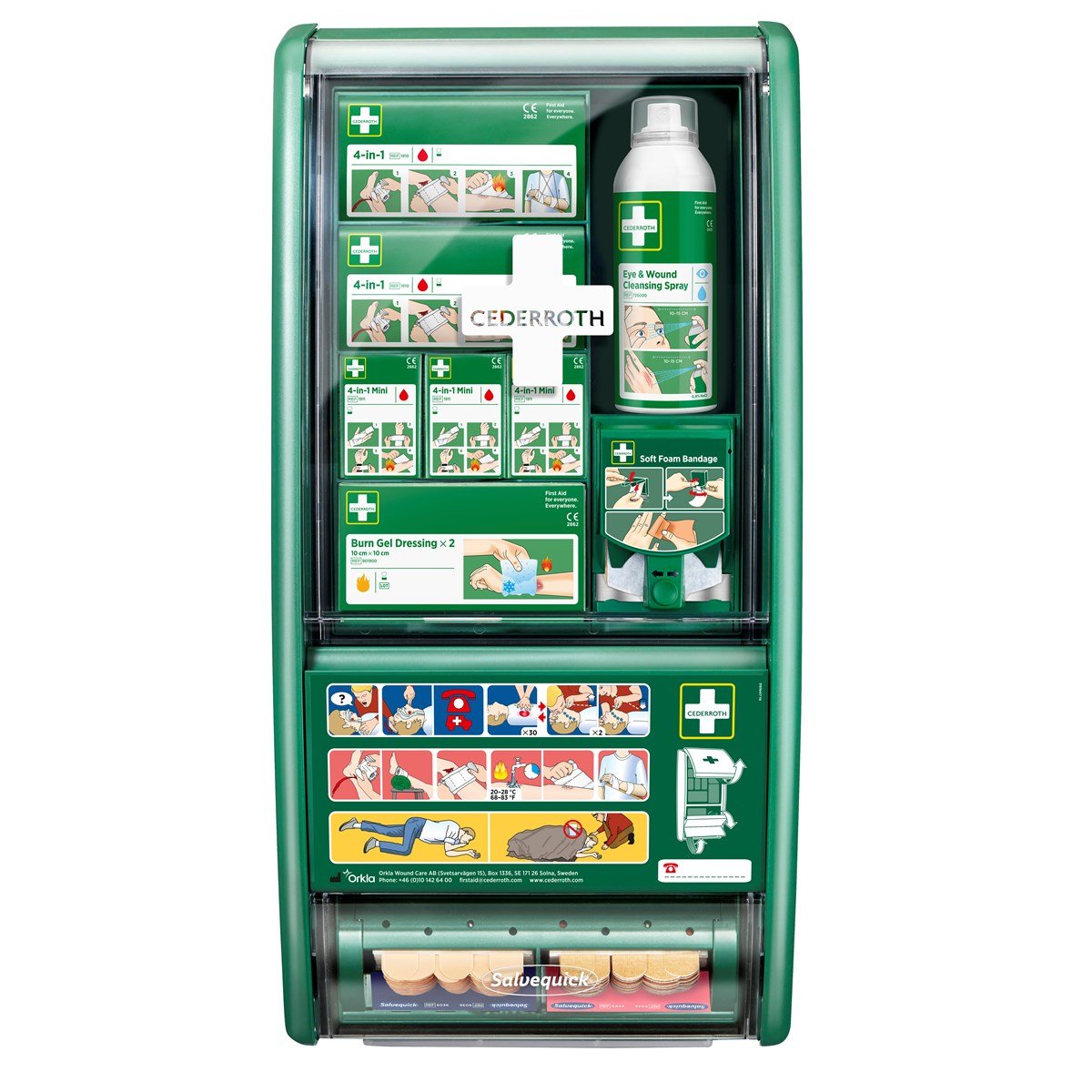 Första Hjälpen-Station som kan hantera flera typer av skador och dessutom enkelt anpassas efter olika vårdbehov. Med en komplett Första Hjälpen-utrustning på din arbetsplats hoppas vi att fler ska kunna och våga hjälpa när olyckan är framme.