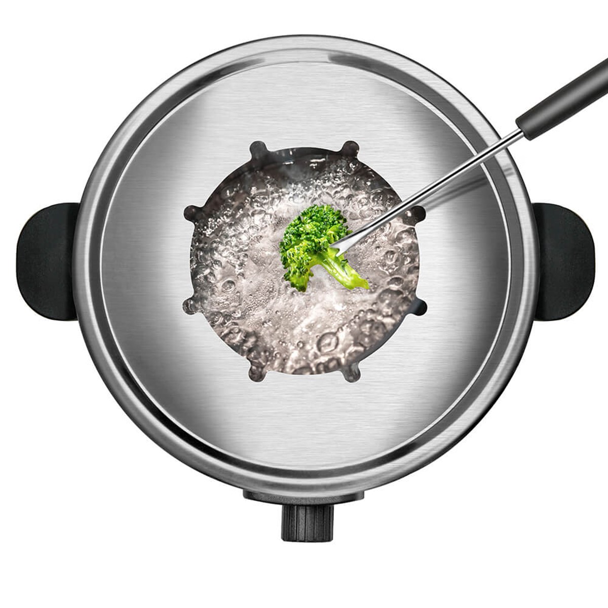 Tack vare sin effekt på 1000 W kan du värma upp innehållet i grytan mycket snabbt. Placera den i mitten av bordet, välj temperatur och den är klar på ett ögonblick.