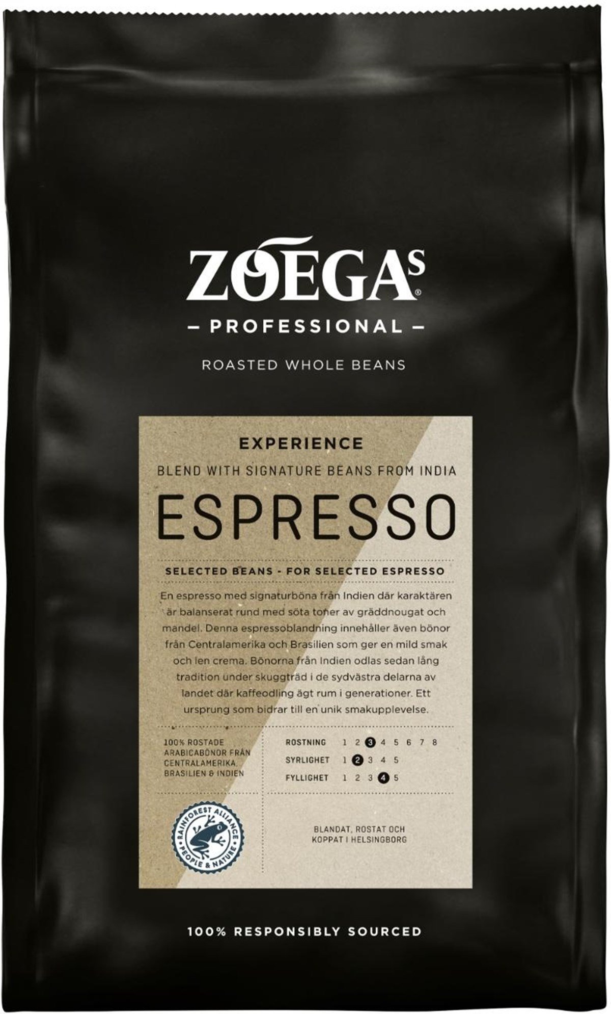En espresso med 100% rostade Arabicabönor, signaturböna från Indien där karaktären är balanserat rund med söta toner av gräddnougat och mandel. Denna espressoblandning innehåller även bönor från Centralamerika och Brasilien som ger en mild smak och len crema.