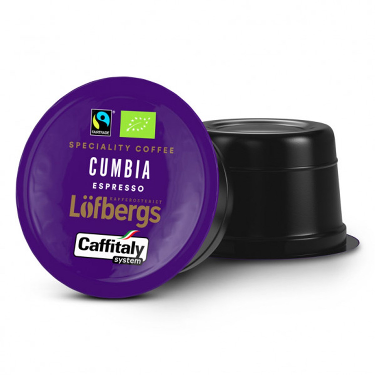 Kaffet i kapslarna är ett specialkaffe som heter Cumbia från Löfbergs. Bönorna odlas på 900-2000 m.ö.h. Colombia, Guatemala, Etiopien hos kooperativ Red Ecolsierra, Asobagri, Sidama.