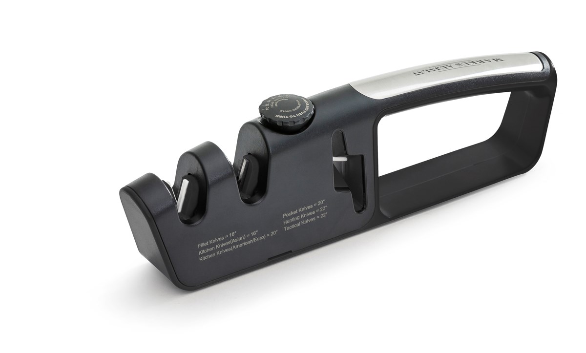 Med justerbar slipvinkel, vilket innebär att du kan slipa dina knivar med samma vinkel som de är tillverkade med. Välj mellan 14-24 graders slipvinkel. Passar alla sorters knivar (ej tandade). Slipskåra för saxar. Mått: 25 x 7 cm.