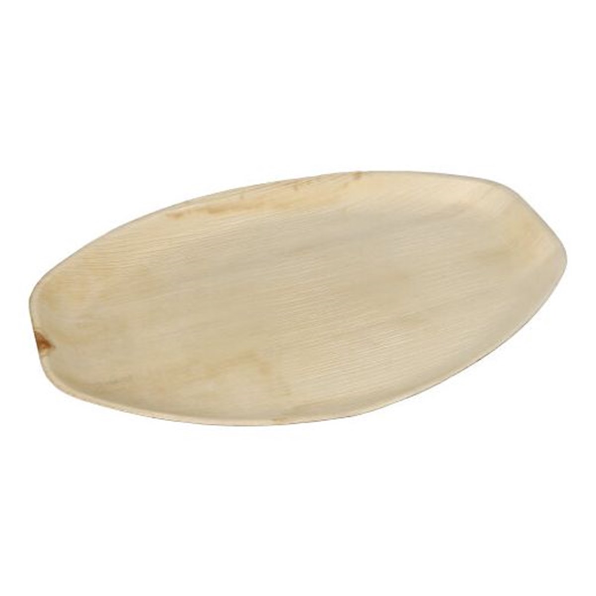Den ovala serveringsbrickan är tillverkad av hållbart palmblad och mäter 43 x 29 cm med en höjd på 3 cm. Dess naturliga design ger en rustik och elegant känsla, perfekt för att servera mat på fester eller evenemang. Palmbladsbrickan är både komposterbar och biologiskt nedbrytbar, vilket gör den till ett miljövänligt alternativ för engångsbruk.