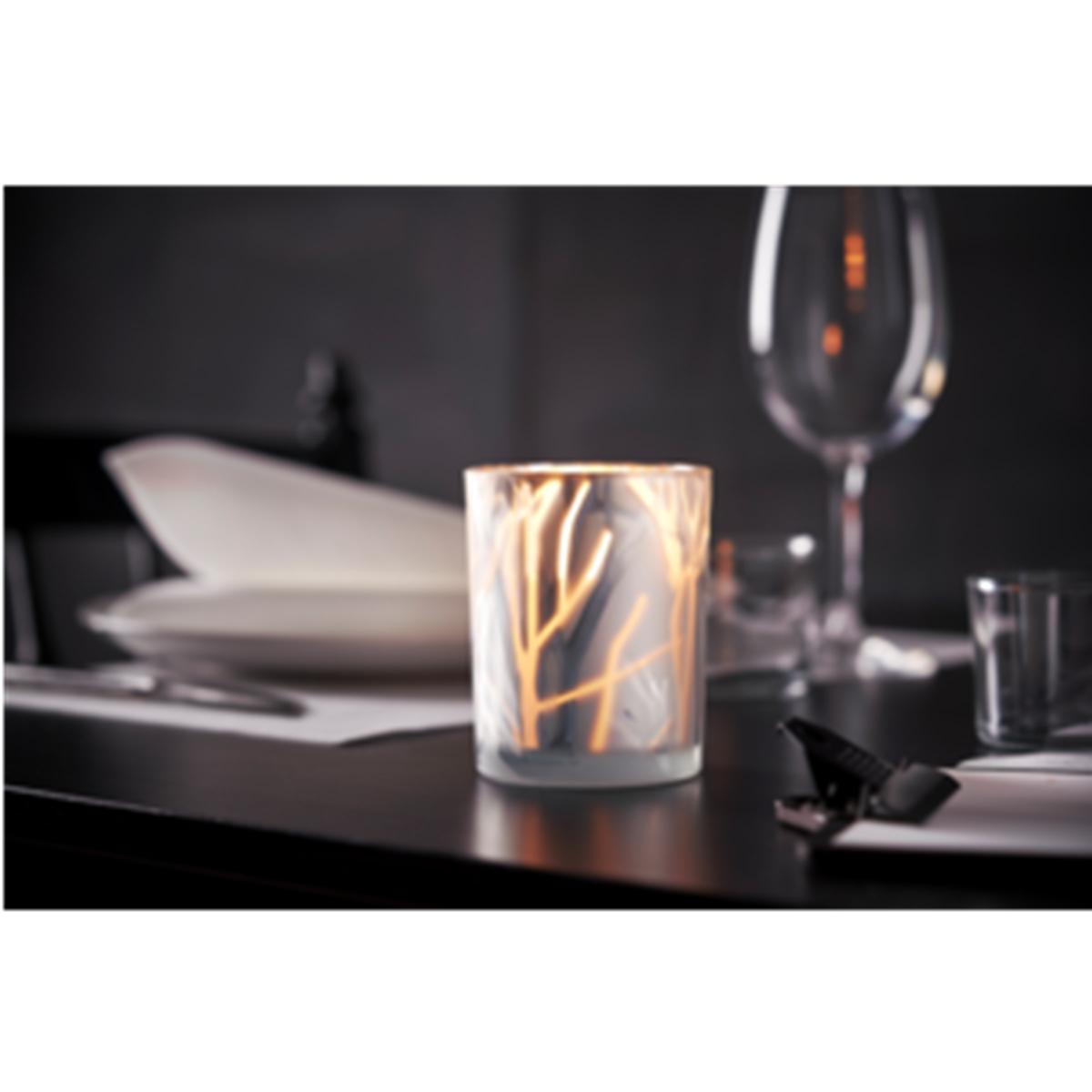Vacker ljushållare i forstat utförande för alla typer av levande ljus och LED-ljus. Mått: 100 x Ø 80 mm.