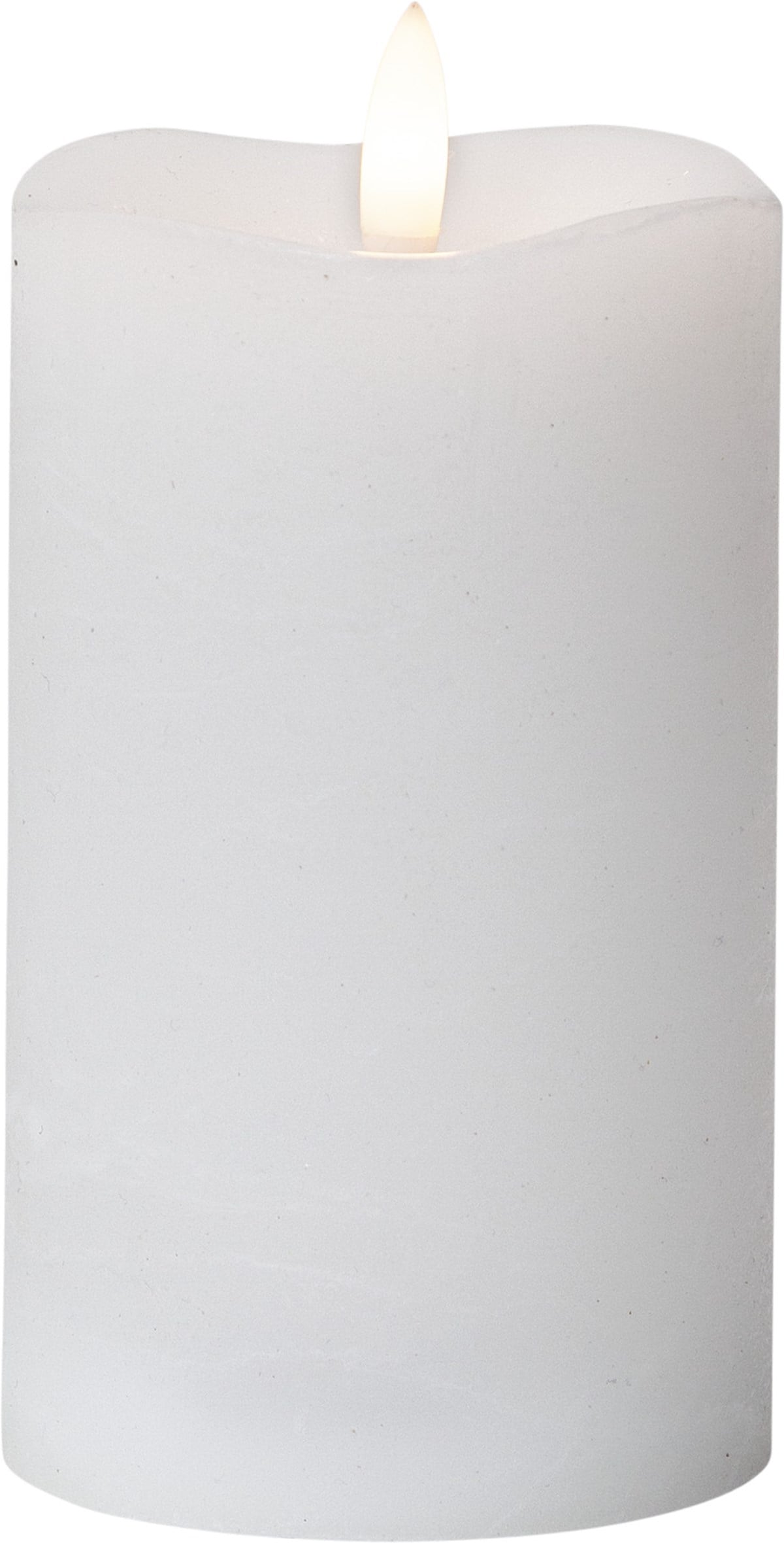 Vaxljus med naturtrogen låga som lyser upp med varmvitt sken. Ljuset har en inbyggd timer, 6 h på, 18 h av, repeterande. Drivs med 3 st AAA-batterier (ingår ej).