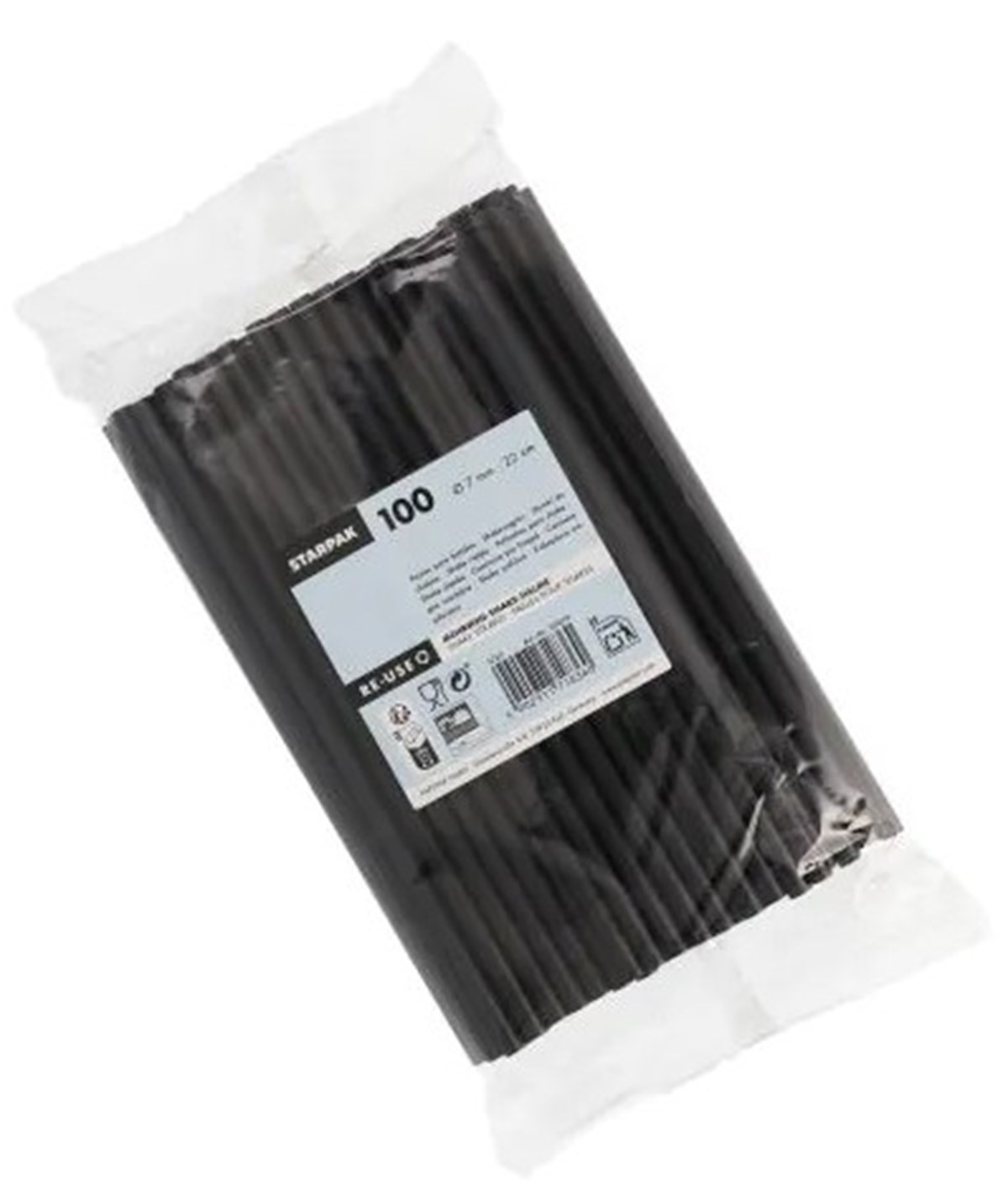 Dessa svarta återanvändbara sugrör av robust polypropen (PP) är det perfekta valet för stilfullt och hållbart dryckesnjutande. Med en längd på 22 cm och en diameter på 8 mm passar de utmärkt för stora glas och tjockflytande drycker som milkshakes, smoothies eller slush. Sugrören är stabila, diskmaskinssäkra och kan användas många gånger – optimala för användning inom restaurang, vid evenemang eller hemma.
