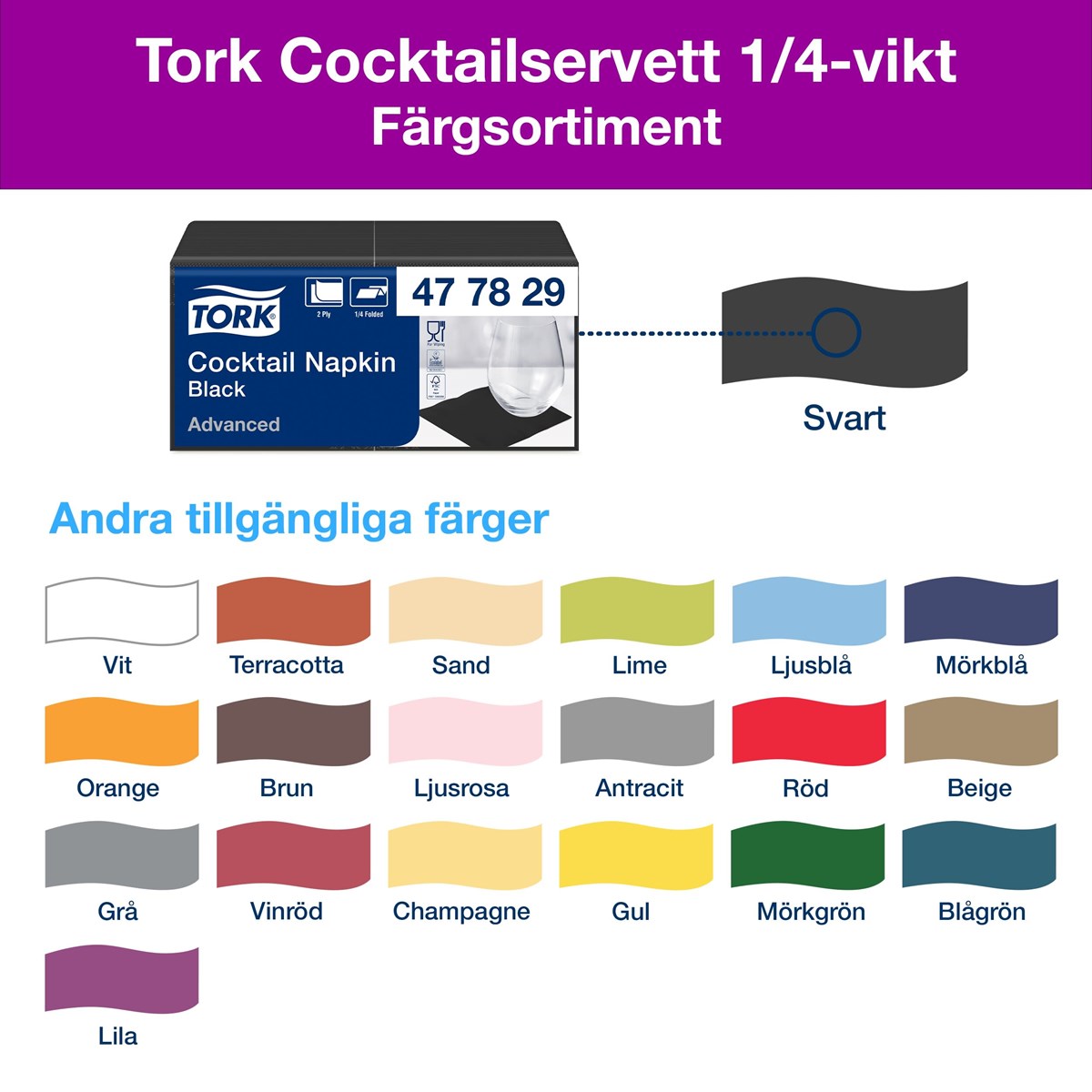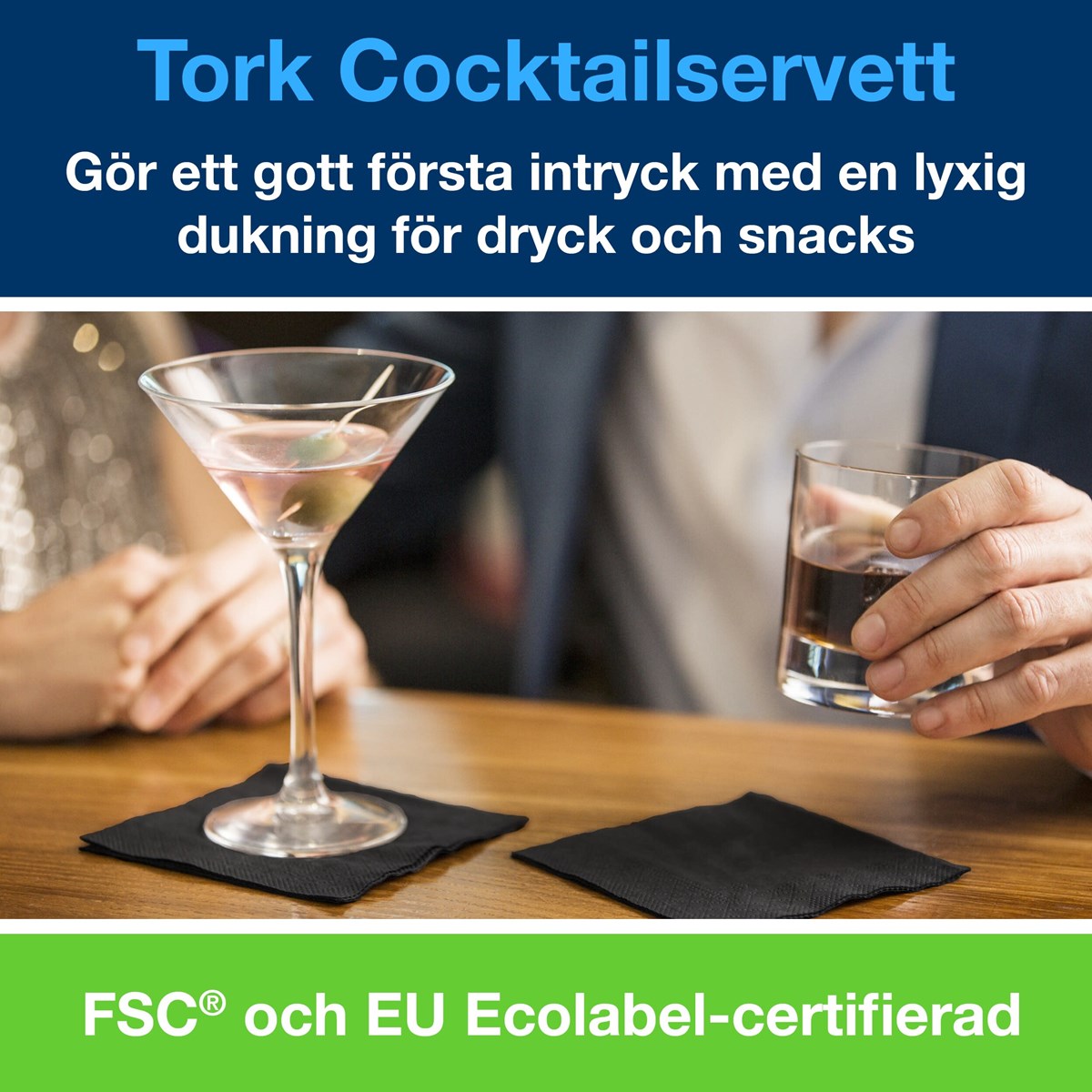 Första intrycket är avgörande i barer och på caféer. Försäkra dig om att gäster njuter av sina snacks- och dryckesupplevelser med vår högkvalitativa Tork Cocktailservett. 2-lagersservetten är tålig nog för att vara under gästernas hela sittningar, vilket leder till en långvarig kundnöjdhet. Gör dig av med engångsservetterna efter varje sittning för att behålla hygienen på en hög nivå och se till att dina bord ser eleganta ut med utbudet av klassiska och moderna färger.