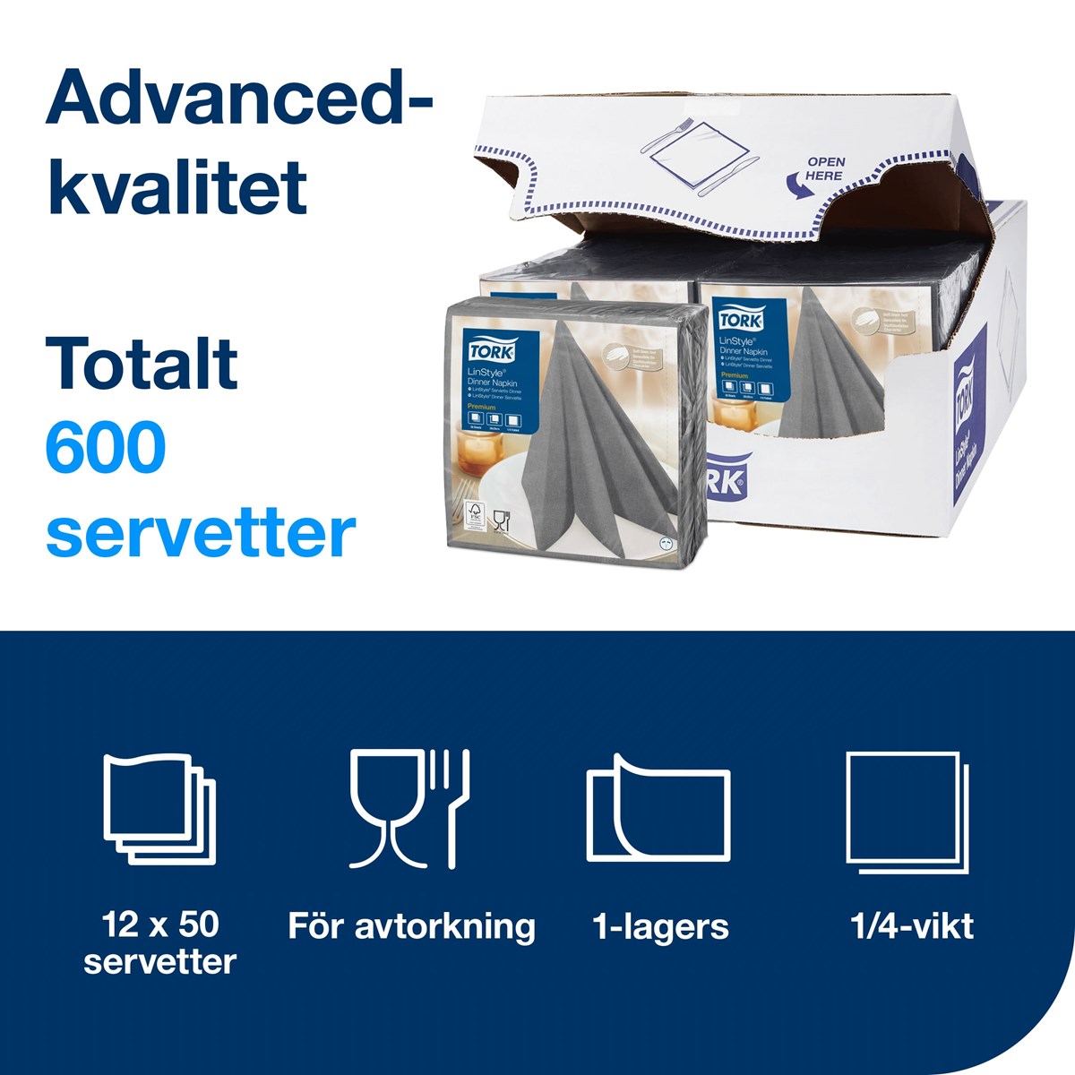 Servett Tork LinStyle 39x39 cm grå 50/fp