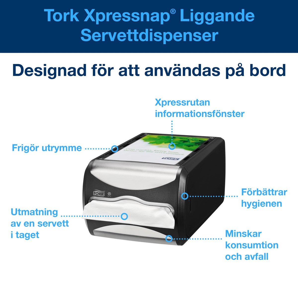 Liggande servettdispenser som kan staplas ovanpå varandra. Placera eget budskap i reklamrutan. Rymmer 550 st N4-servetter. Format: H14,5 x B19,1 x D30,5 cm.