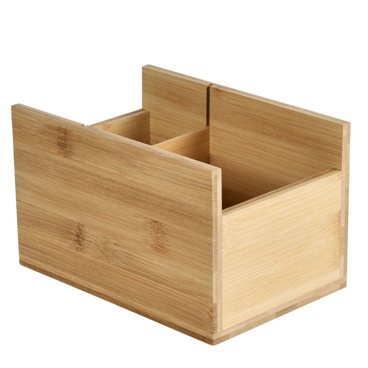 Platsbesparande, perfekt för diskar och barer, minimerar onödigt slöseri av servetter. Utnyttja dina utrymmen maximalt. Ordna facken så att de passar dina servetter och/eller bestick, kryddor m.m. Tillverkade av miljömedveten, taktil och elegant bambu.