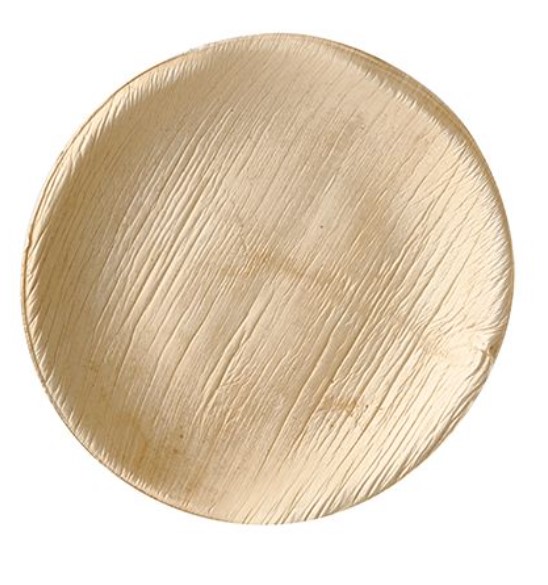 Tallrik tillverkad av fallna palmblad från den indiska Betel palmen. När palmbladen fallit till marken så samlas de in, tvättas och torkas under solen. Sedan pressas de till önskad form och storlek i en unik värmeprocess.