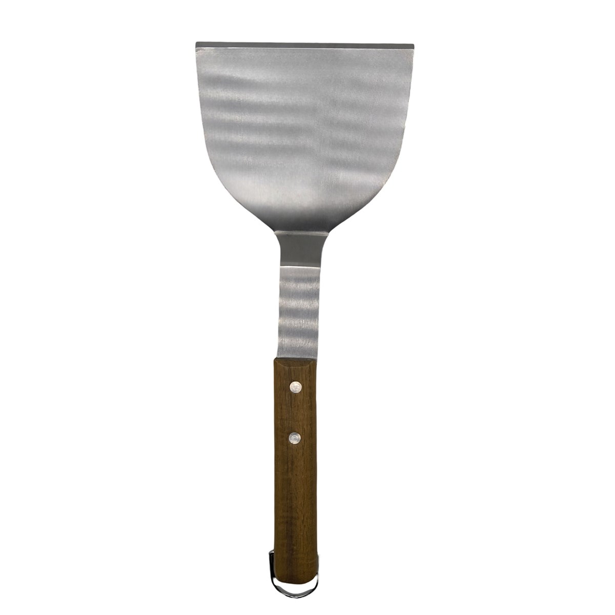 Flippa burgare som ett proffs med denna smidiga burger flipper! Denna premium-spatel i rostfritt stål och akaciaträ är 31 cm lång och har en tunn, bred design som gör det enkelt att vända burgare utan att de går sönder. Längd: 31 cm.