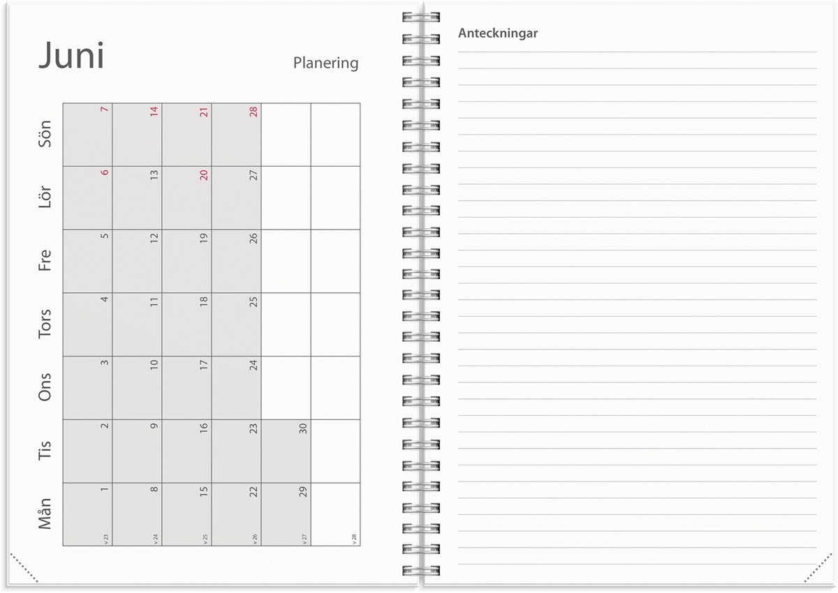 Study A5 är en praktisk kalender för den studerande. Med en stående layout samt timindelning 8-17 hjälper kalendern dig att behålla strukturen genom hela läsåret. Det finns även utrymme för att skriva upp årsplaner, scheman och provresultat för att lättare kunna reflektera över akademisk utveckling. För att underlätta organiseringen har Study även en praktisk förvaringsficka. Allt du behöver för ett framgångsrikt läsår!