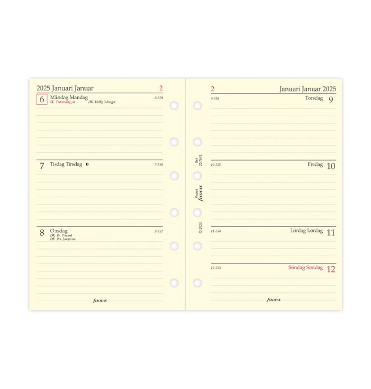 Årspaket Filofax Pocket 2025 vecka/uppslag