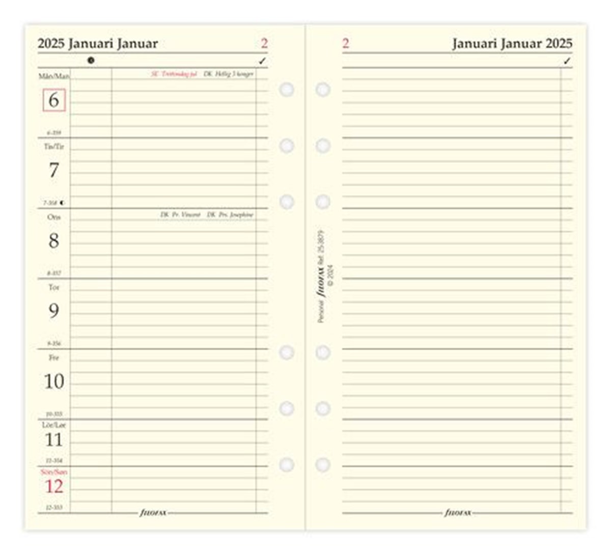 Dagbok Filofax Pocket 2025 vecka/sida + noteringssida