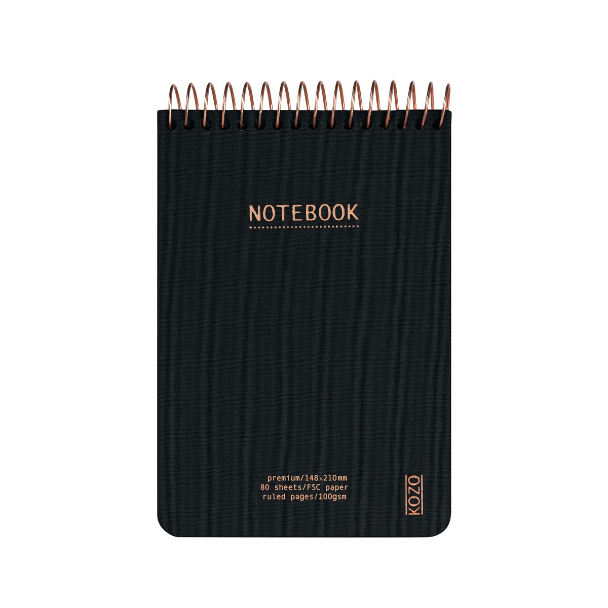 KOZO Premium anteckningsbok är definitivt en av de snyggaste anteckningsböckerna på marknaden. Det kraftiga canvasomslaget med vackra detaljer i brons och den kaxigt stora spiralen även den i brons. Gör den perfekt att skriva och ta anteckningar i både när du har den liggandes i knät eller till och med stående utan stöd. Givetvis är den en vacker inredningsdetalj till ditt skrivbord.