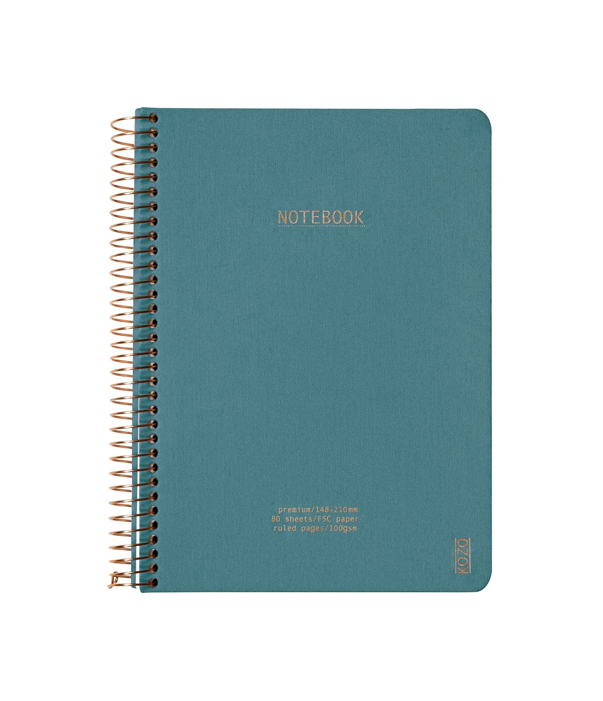 KOZO Premium anteckningsbok är definitivt en av de snyggaste anteckningsböckerna på marknaden. Det kraftiga canvasomslaget med vackra detaljer i brons och den kaxigt stora spiralen även den i brons. Gör den perfekt att skriva och ta anteckningar i både när du har den liggandes i knät eller till och med stående utan stöd. Givetvis är den en vacker inredningsdetalj till ditt skrivbord.