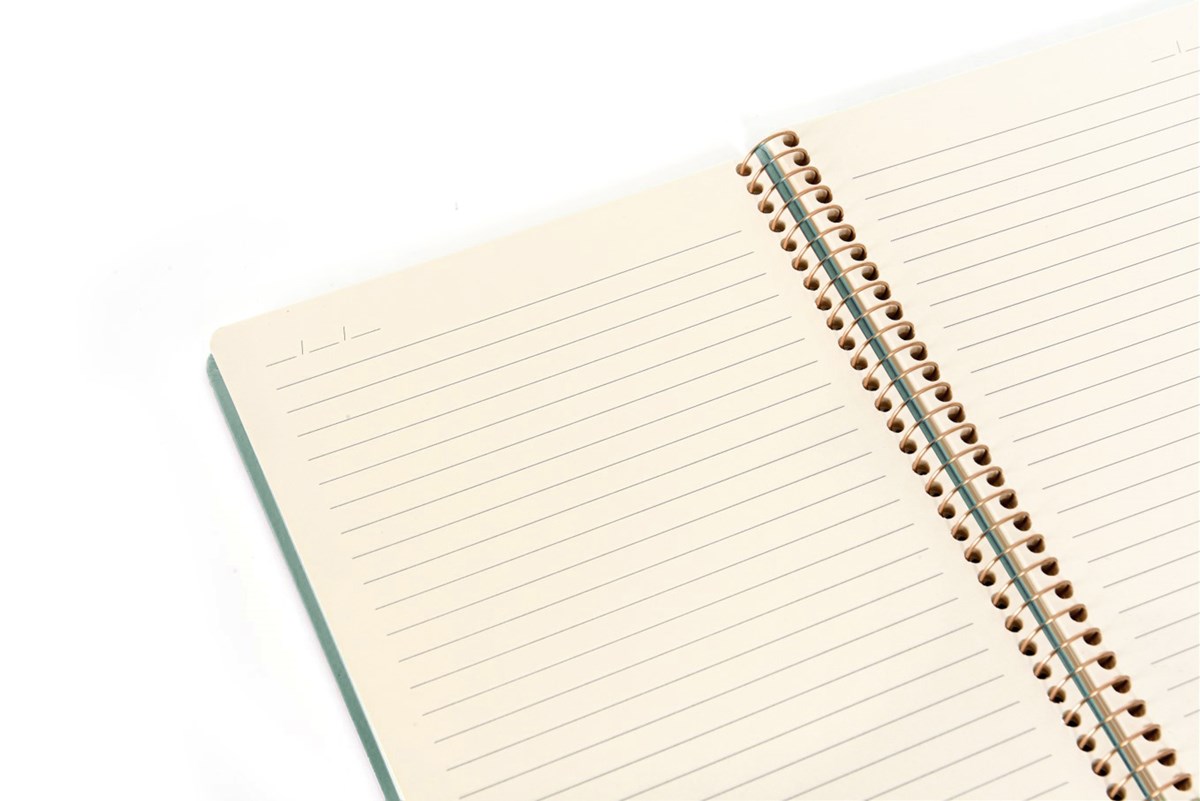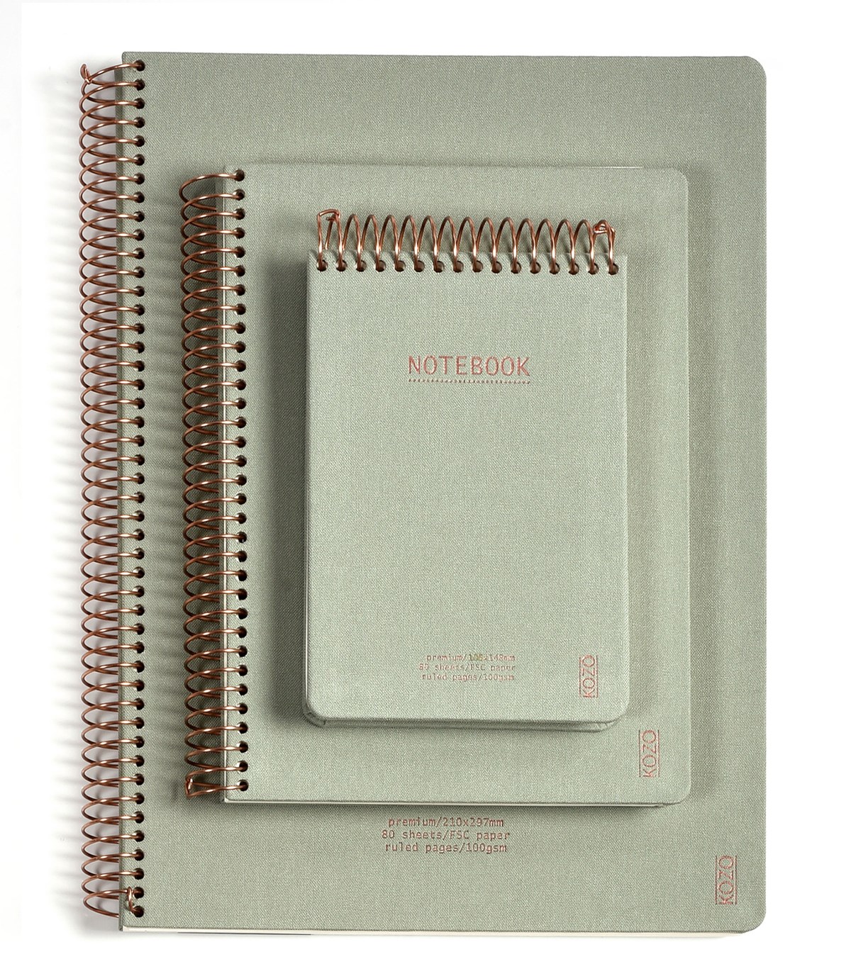 KOZO Premium anteckningsbok är definitivt en av de snyggaste anteckningsböckerna på marknaden. Det kraftiga canvasomslaget med vackra detaljer i brons och den kaxigt stora spiralen även den i brons. Gör den perfekt att skriva och ta anteckningar i både när du har den liggandes i knät eller till och med stående utan stöd. Givetvis är den en vacker inredningsdetalj till ditt skrivbord.