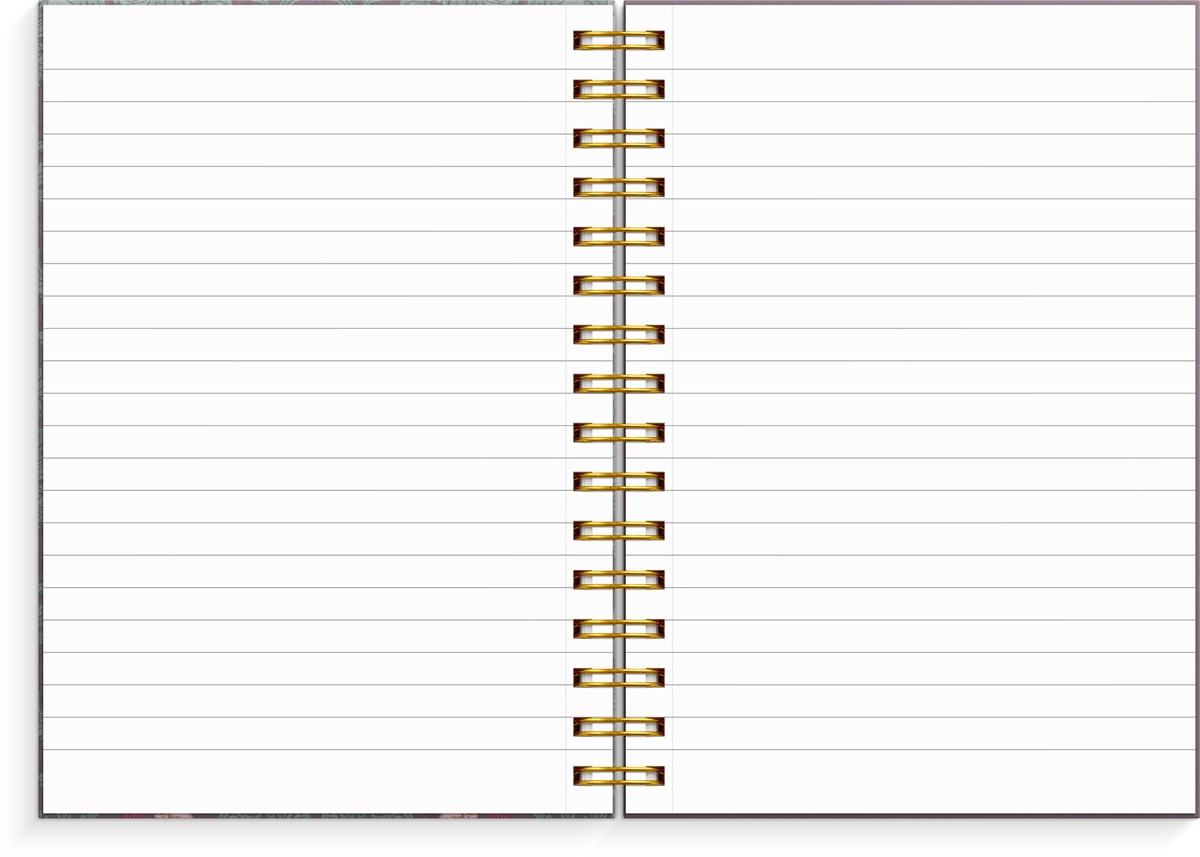 Format: A5. Layout: Linjerad. Omslag: Kartong. Spiralbunden. Antal sidor: 300. Pappersvikt: 70 g. Miljöinformation: FSC®.