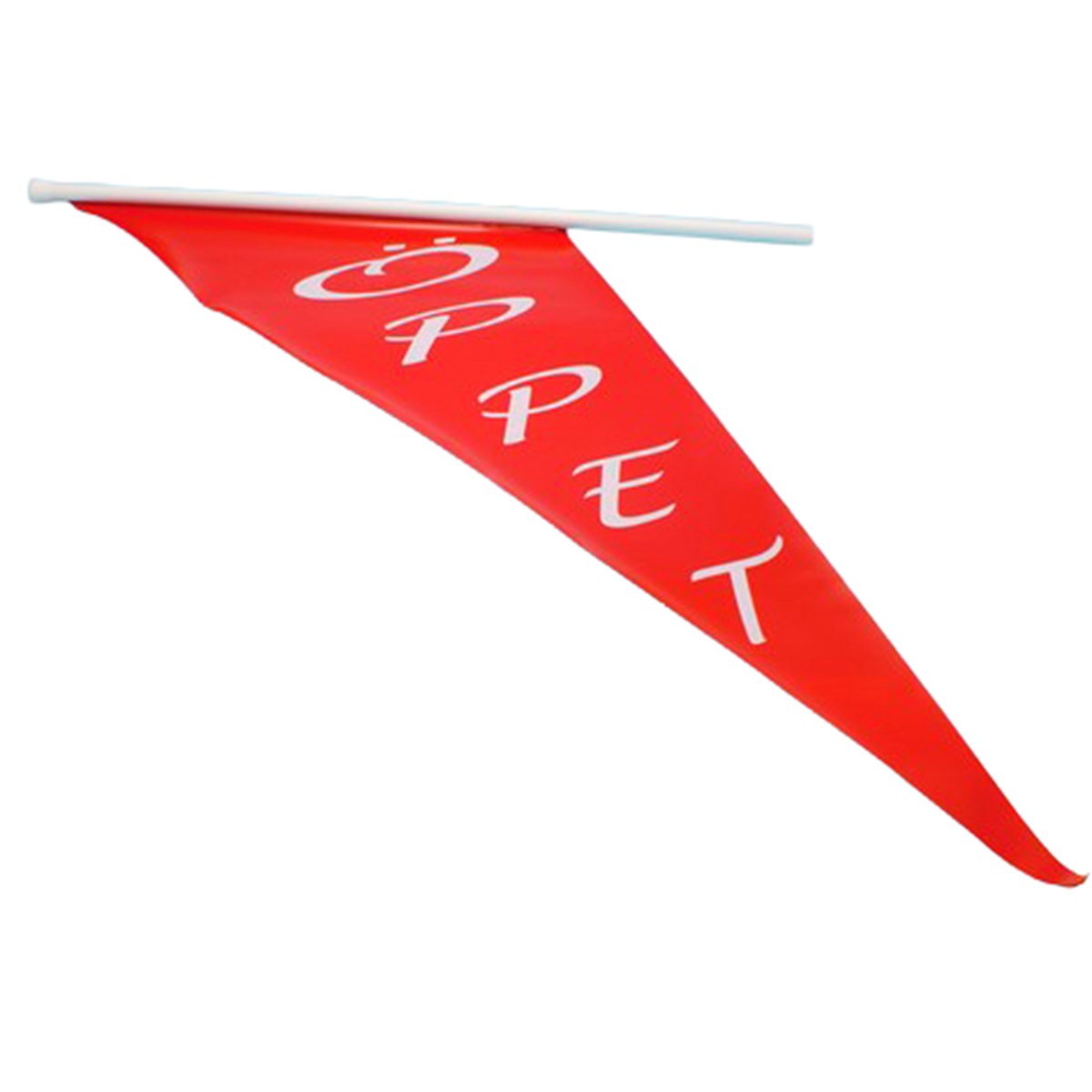 Vimpel med texten "Öppet". Mått flagga: 54x119x84 cm. Mått stång: 78,5 cm.