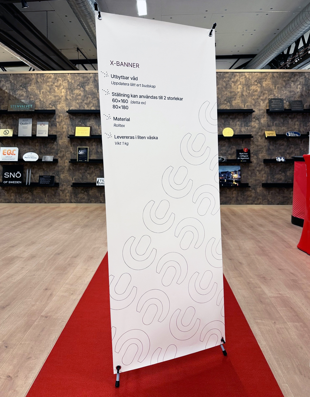 X-Banner inkluderar våd i Rolltex med 4-färgstryck.