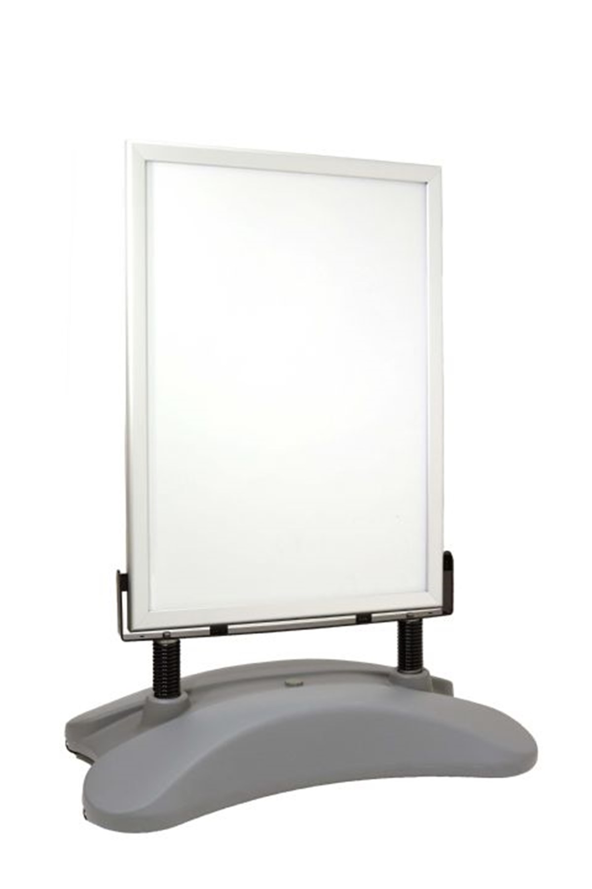 Gatuställ i format 70x100 cm. 45 mm aluminiumram samt grå plastbehållare på hjul som kan fyllas med t ex. vatten för att få en bra tyngd på stället. Ramen sitter monterad på fjädrar vilket gör att stället är mindre vindkänsligt än andra ställ. Levereras med frontplast.