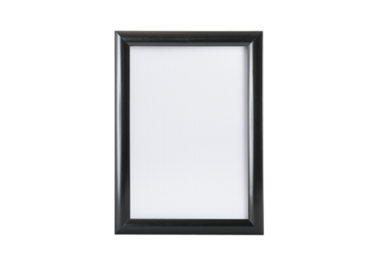 Väggram i svart aluminium med 25 mm snäppram. Enkelt att byta budskap samt ger en snygg inramning av budskapet. Inklusive frontplast samt skruv och plugg för montering.