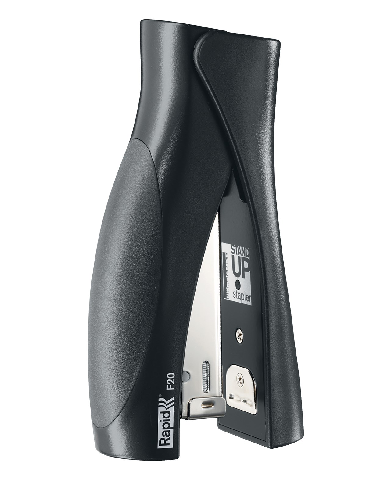 Bekväm högpresterande upprätt häftapparat med stålmekanism och ergonomiskt gummihandtag. Perfekt för hem och kontor. Häftar upp till 20 ark papper. För 24/6 och 26/6 Rapid Strong häftklammer.